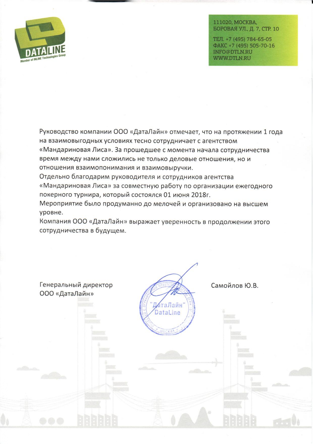 Самойлов Ю.В. , Генеральный директор ООО «ДатаЛайн»
