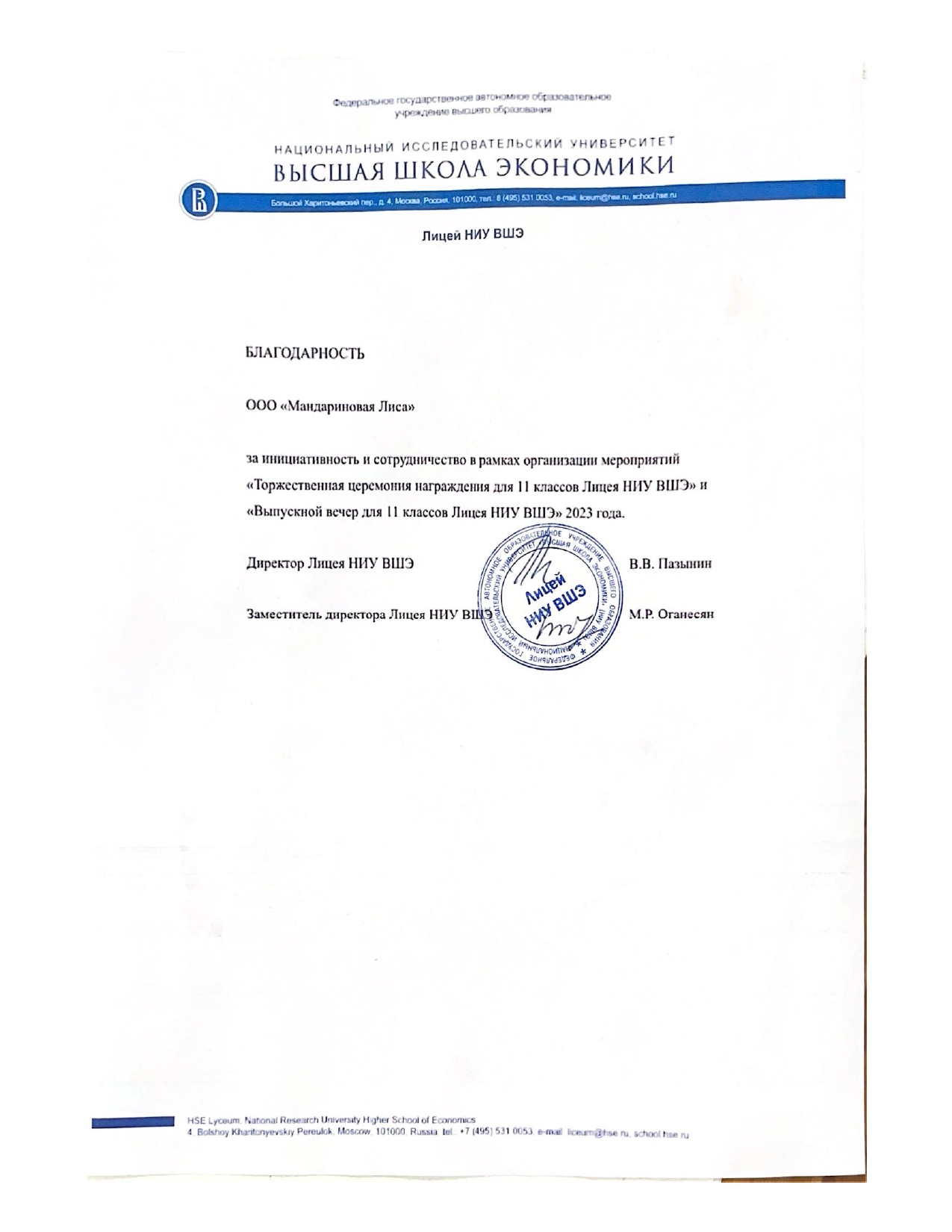 В.В. Пазынин, Директор Лицея НИУ ВШЭ