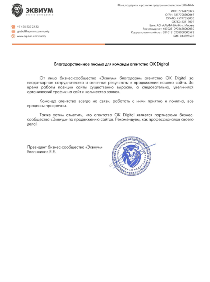 Грамотный подход специалистов, менеджеров и профессиональной компании OK Digital, индивидуальный подход и внимательность к клиентам.