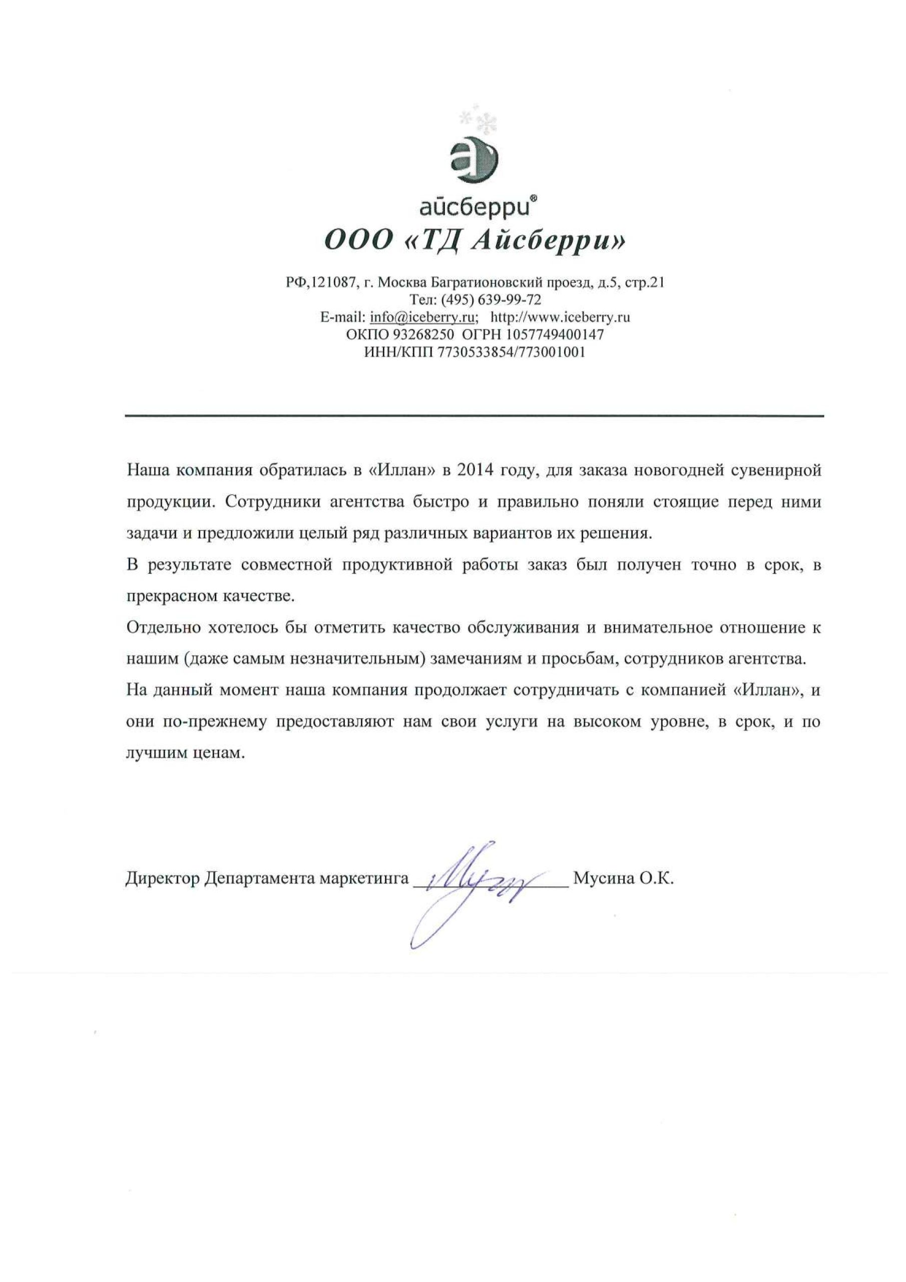 О.К. Мусина - директор Департамента маркетинга ООО "ТД Айсберри"