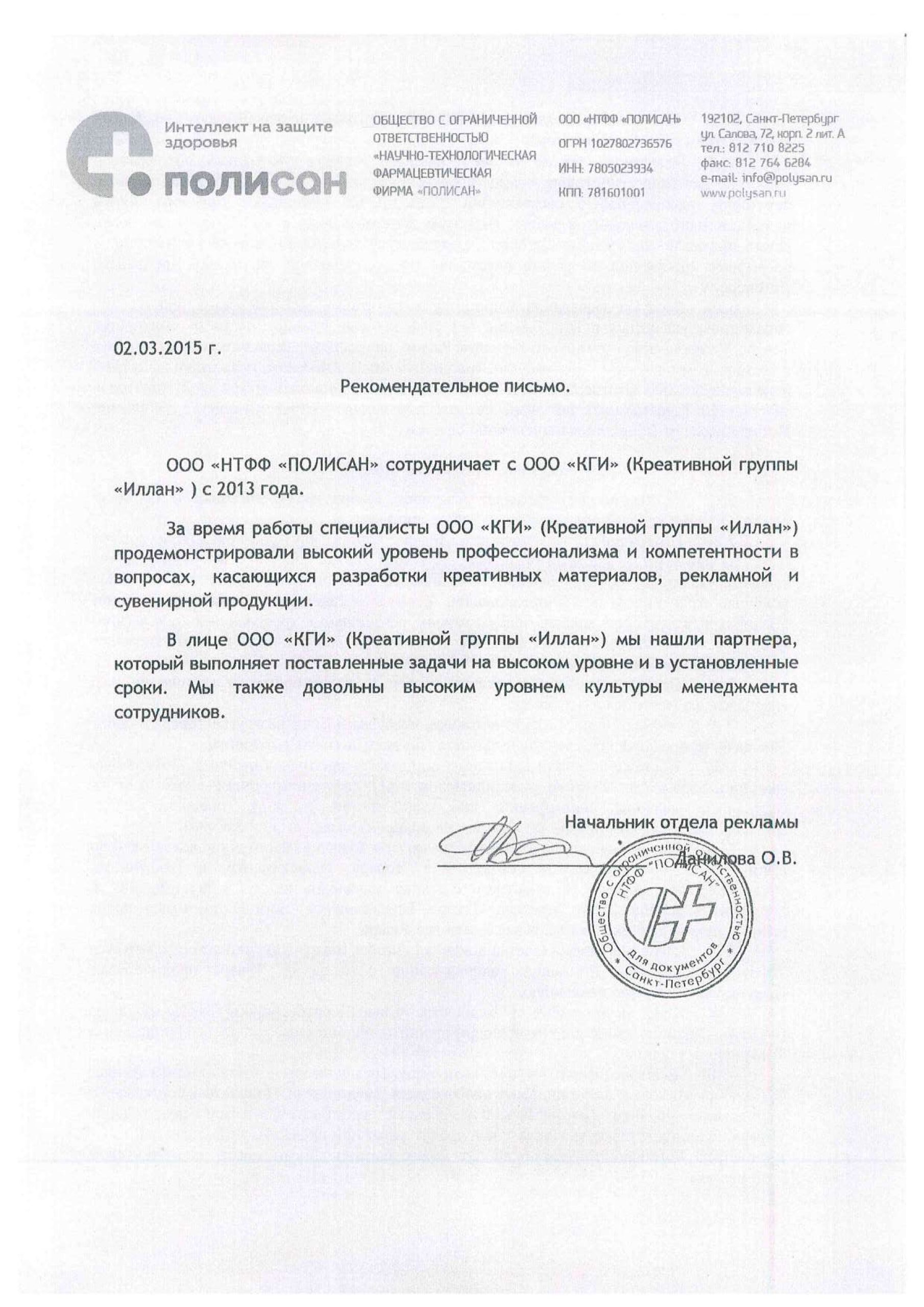 О.В. Данилова - начальник отдела рекламы ООО "НТФФ "ПОЛИСАН"