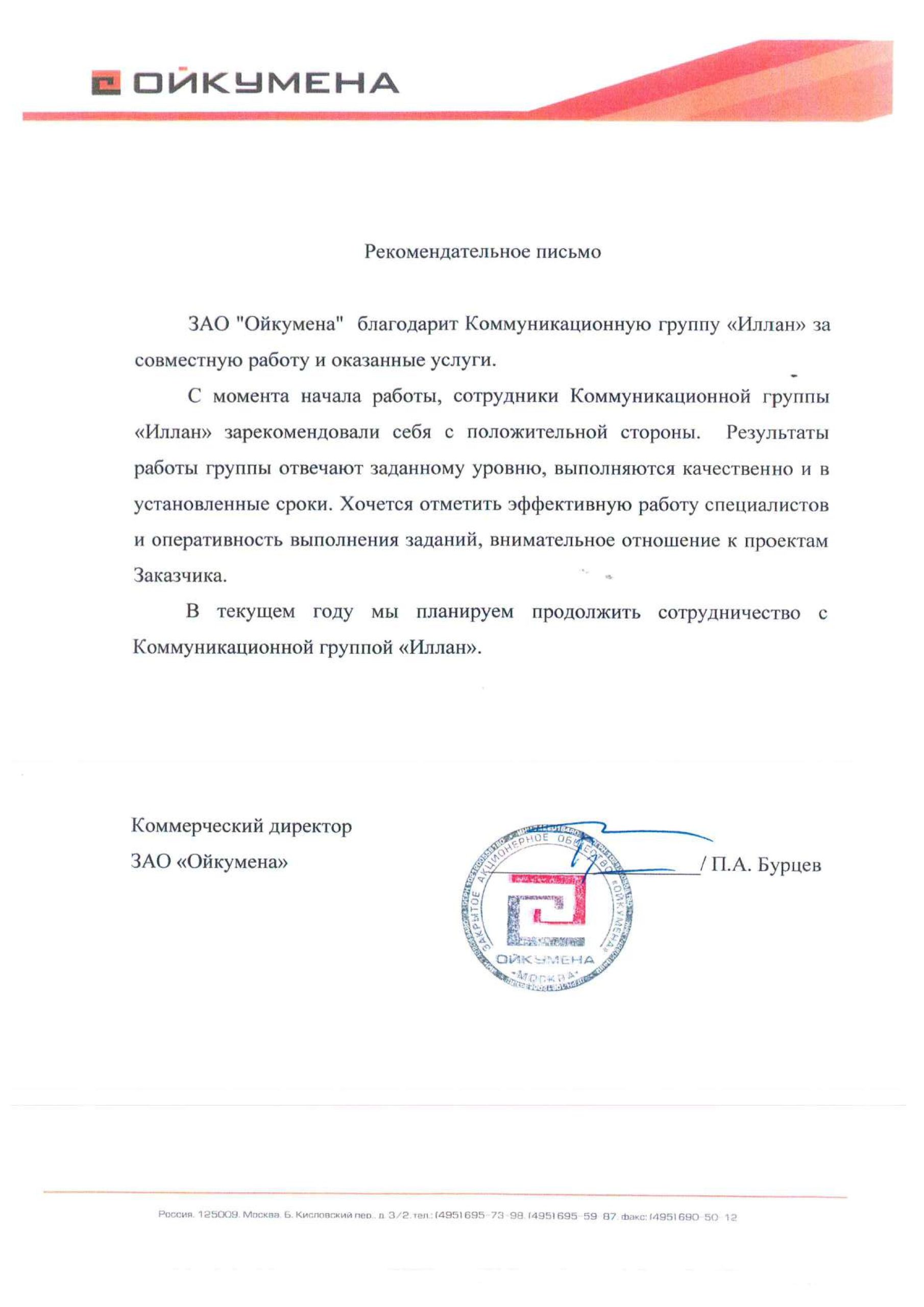 П.А Бурцев - коммерческий директор ЗАО "Ойкумена"