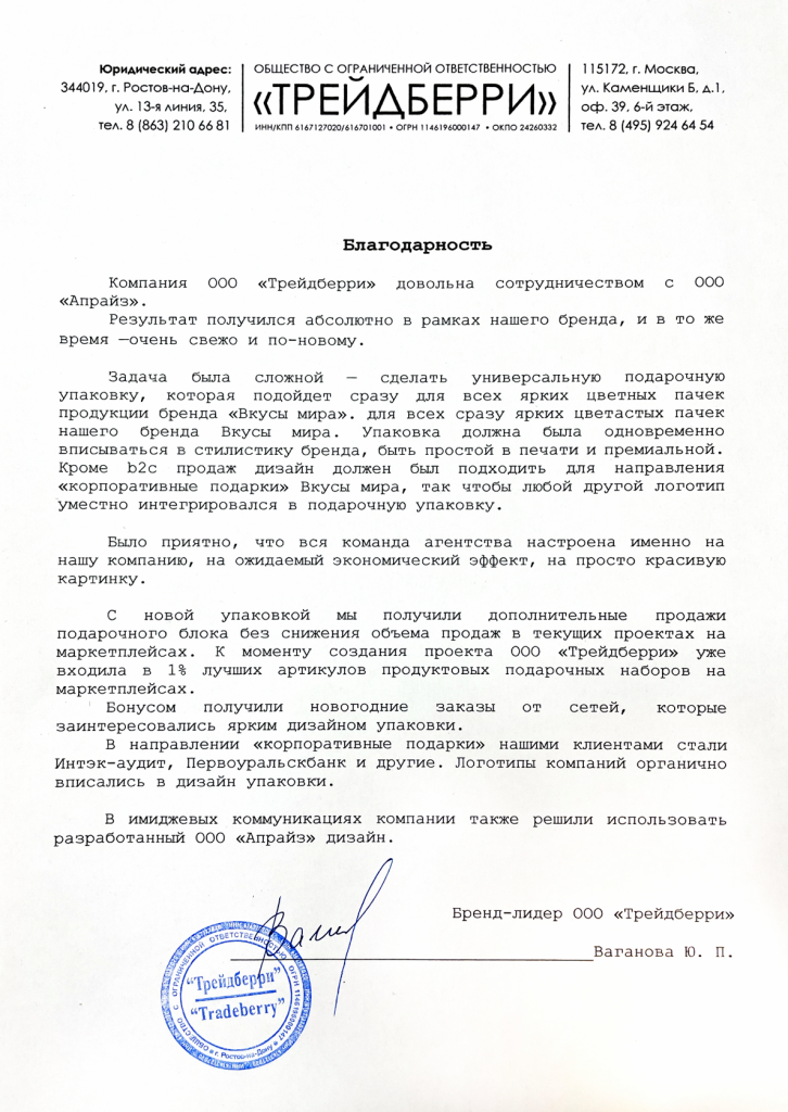 Ваганова Ю.П., Бренд-лидер, ООО "Трейдберри"