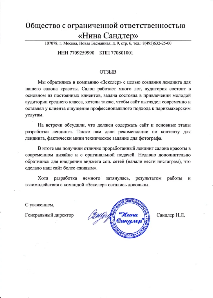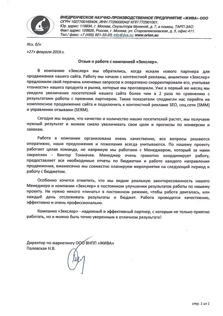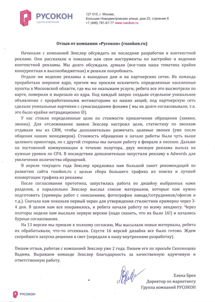 Пишем отзыв, работая с компанией Зекслер уже 2 года. Пишем его по просьбе Скопинцева Вадима. Выражаем команде Зекслер благодарность за качественную вдумчивую и ответственную работу.