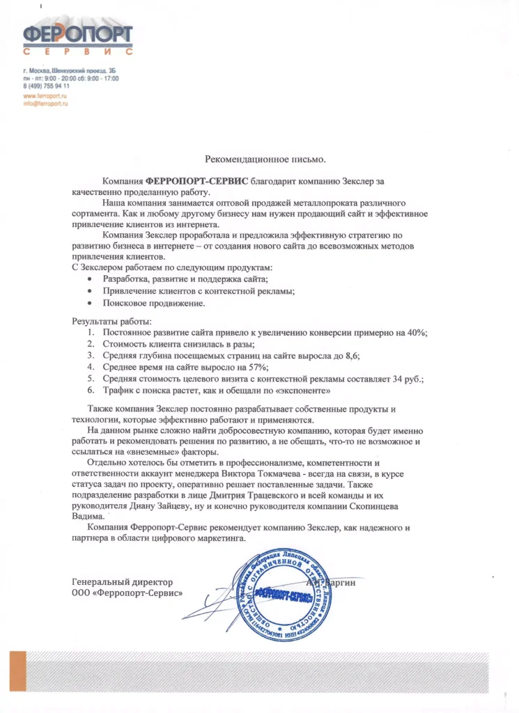 Компания Ферропорт-Сервис рекомендует компанию Зекслер, как надежного партнера в области цифрового маркетинга.