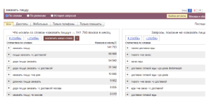 Смотрите, как уменьшается частотность запросов при внесении уточняющих слов.