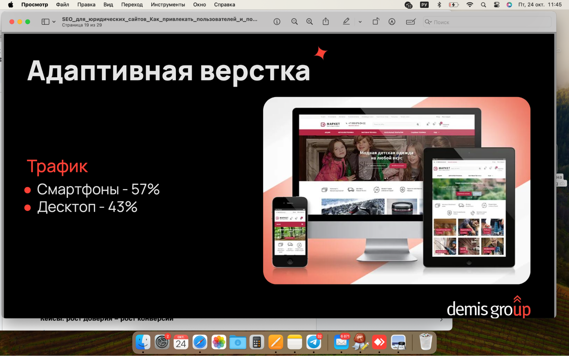 Сегодня более половины посетителей юридических сайтов приходят со смартфонов, поэтому адаптивный дизайн и интуитивно понятный интерфейс становятся ключевыми факторами удержания и конверсии.