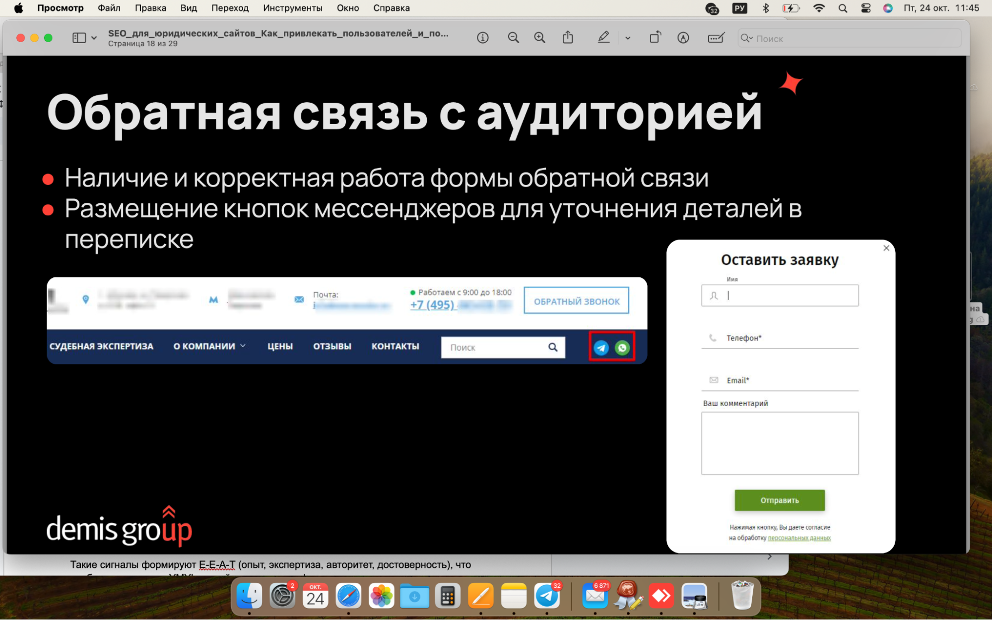 - внедрены формы связи и актуальные мессенджеры;