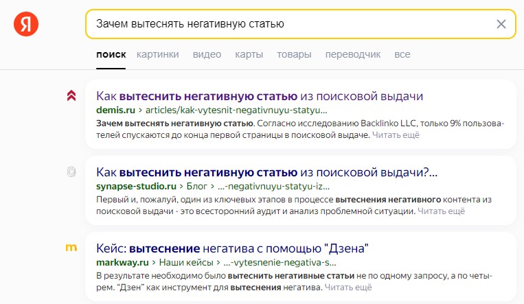Шаг 3. Подобрать тему для статьи, которая вытеснит негатив