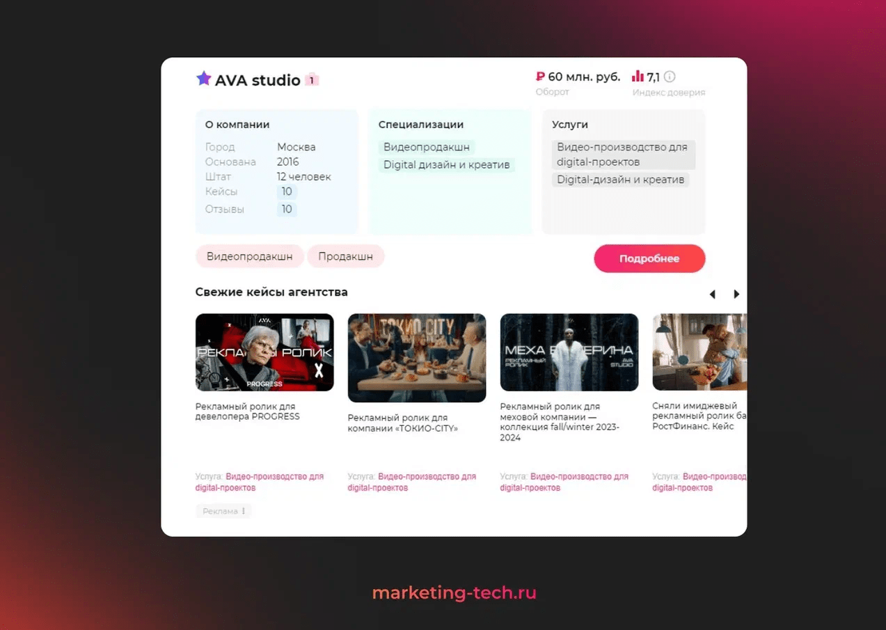 Видимость карточки агентства в каталоге. Изображение с сайта https://marketing-tech.ru/