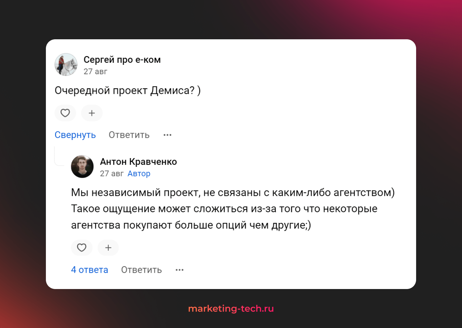 Реакция на первые результаты сотрудничества с MARKETING-TECH