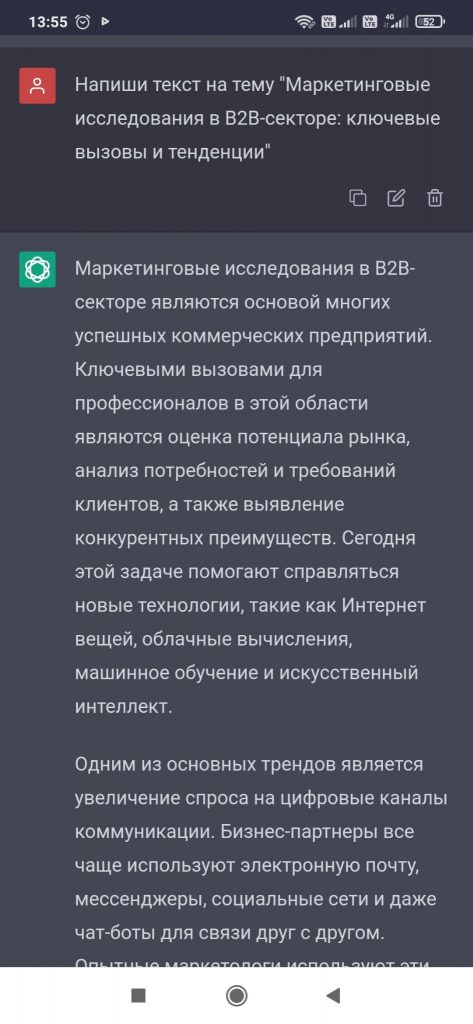 Рисунок 1. Диалог с ChatGPT – и на выходе “заготовка” для новой статьи.