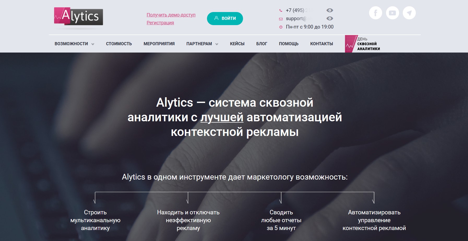 Alytics – это система, которая предоставляет точный коллтрекинг, оптимизирует трафик контекстной рекламы и увеличивает продажи при неизменном бюджете. Платформа Alytics поддерживает все аналитические системы. В Alytics предусмотрено несколько модулей: коллтрекинг, модуль аналитики, модуль управления ставками и модуль генерации товарной рекламы.