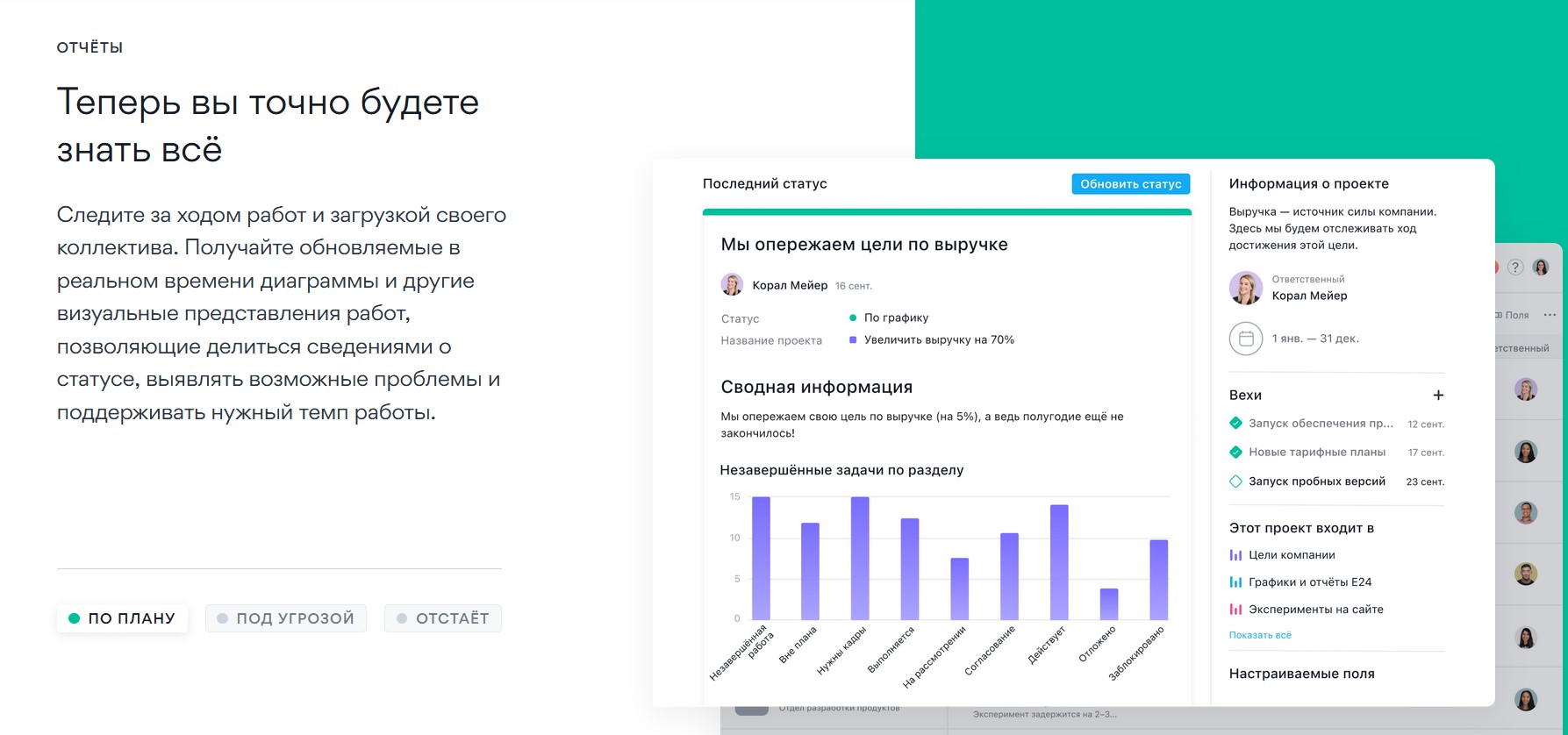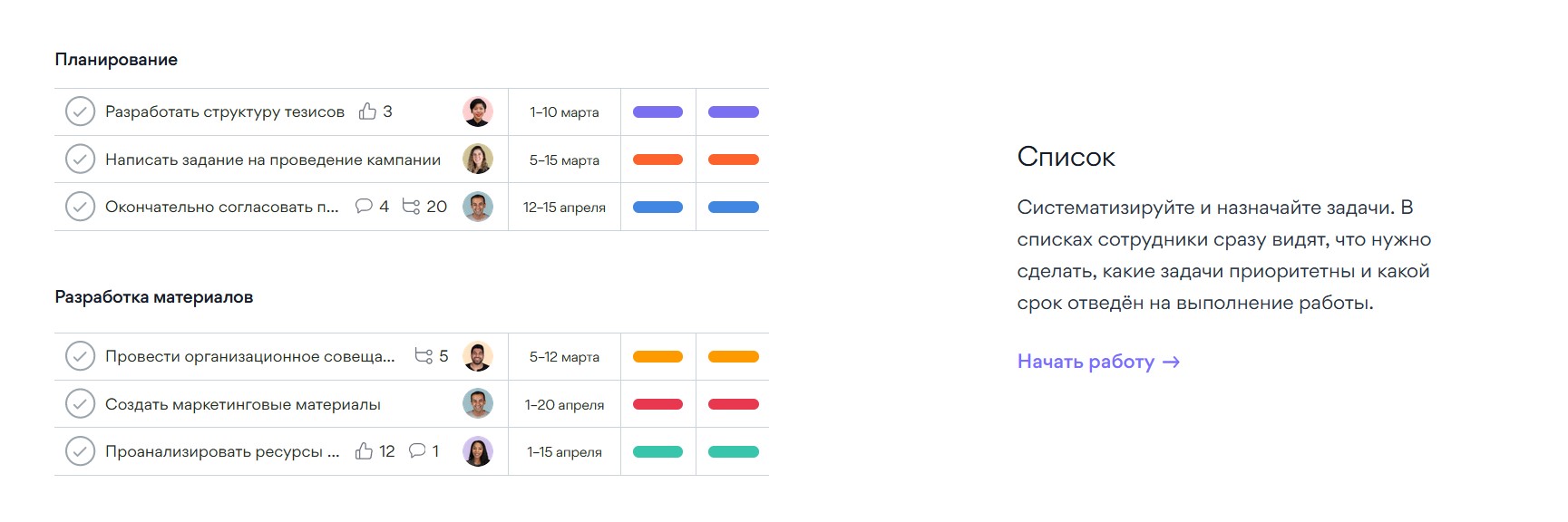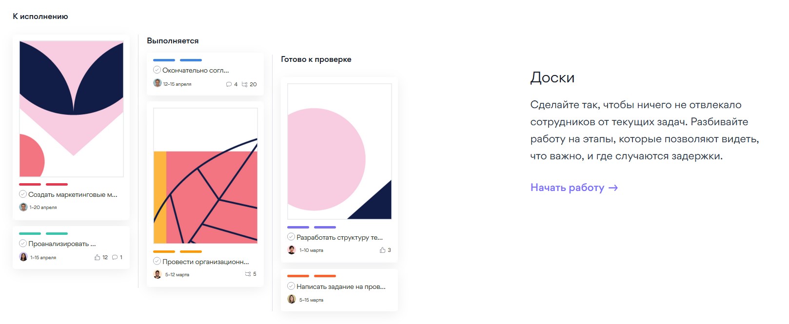 - Сервис заменяет общение по электронной почте, используя функции управления задачами и напоминаний.