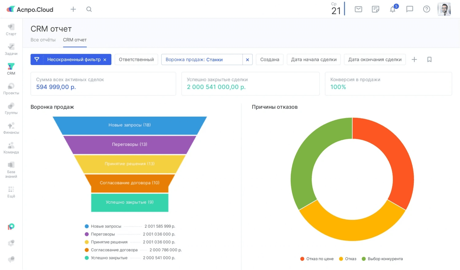 - Воронки продаж;