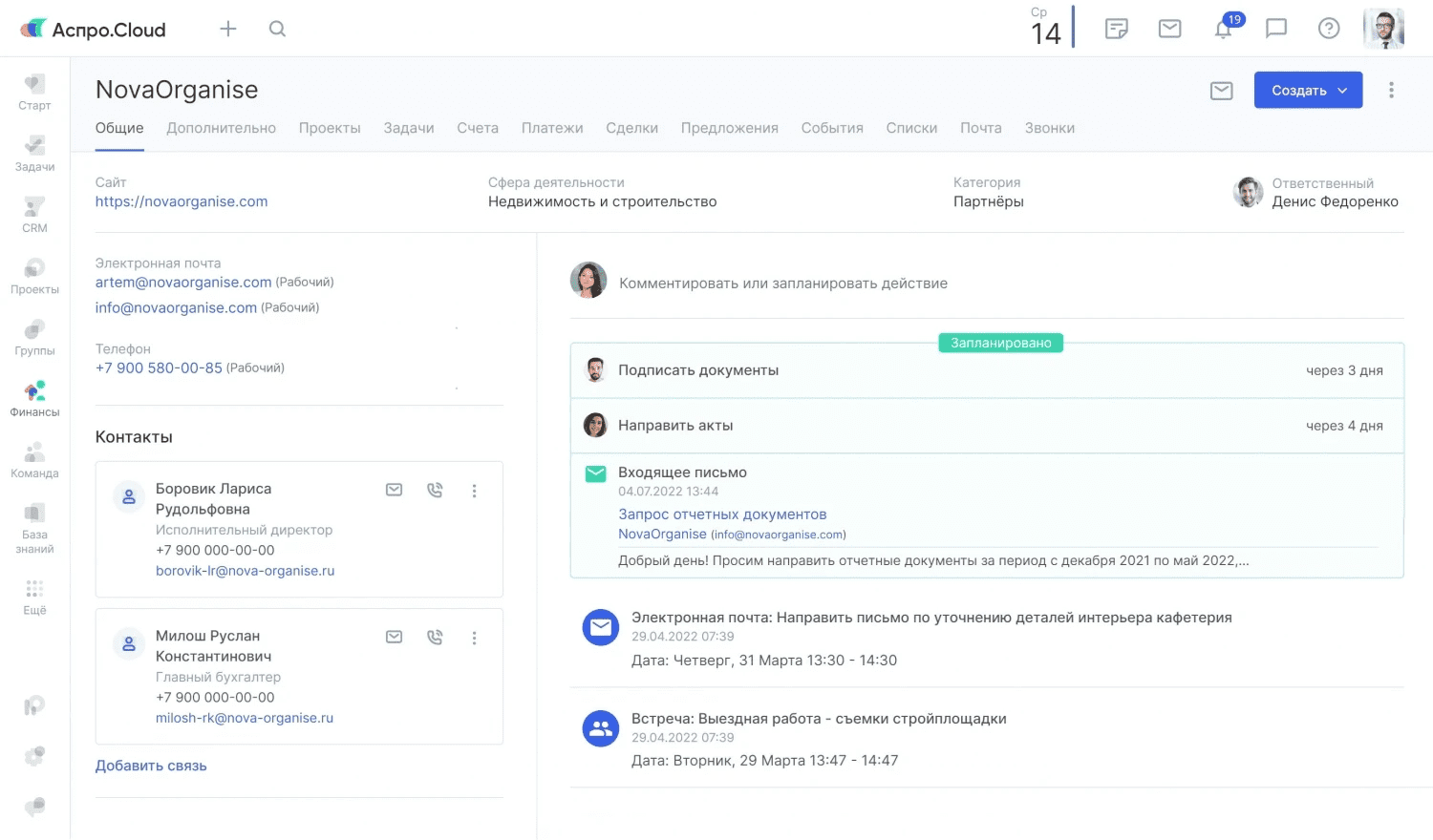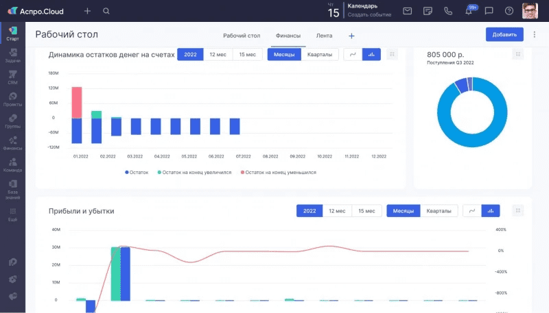 Остановили выбор на Аспро.Cloud, проведя длительное сравнение нескольких сервисов. Мы нуждались в финансовом блоке и управлении проектами, но самое важно было наладить связь между этими модулями. Результаты внедрения начали проявляться с первой недели — нашлись переплаты в 40 тысяч рублей и был откорректирован финансовый план.