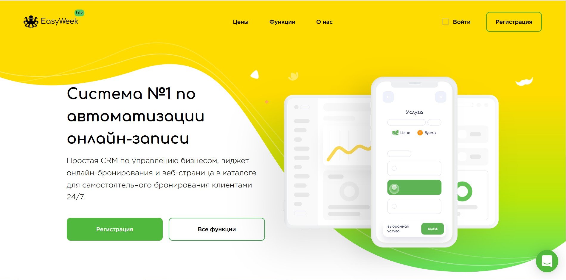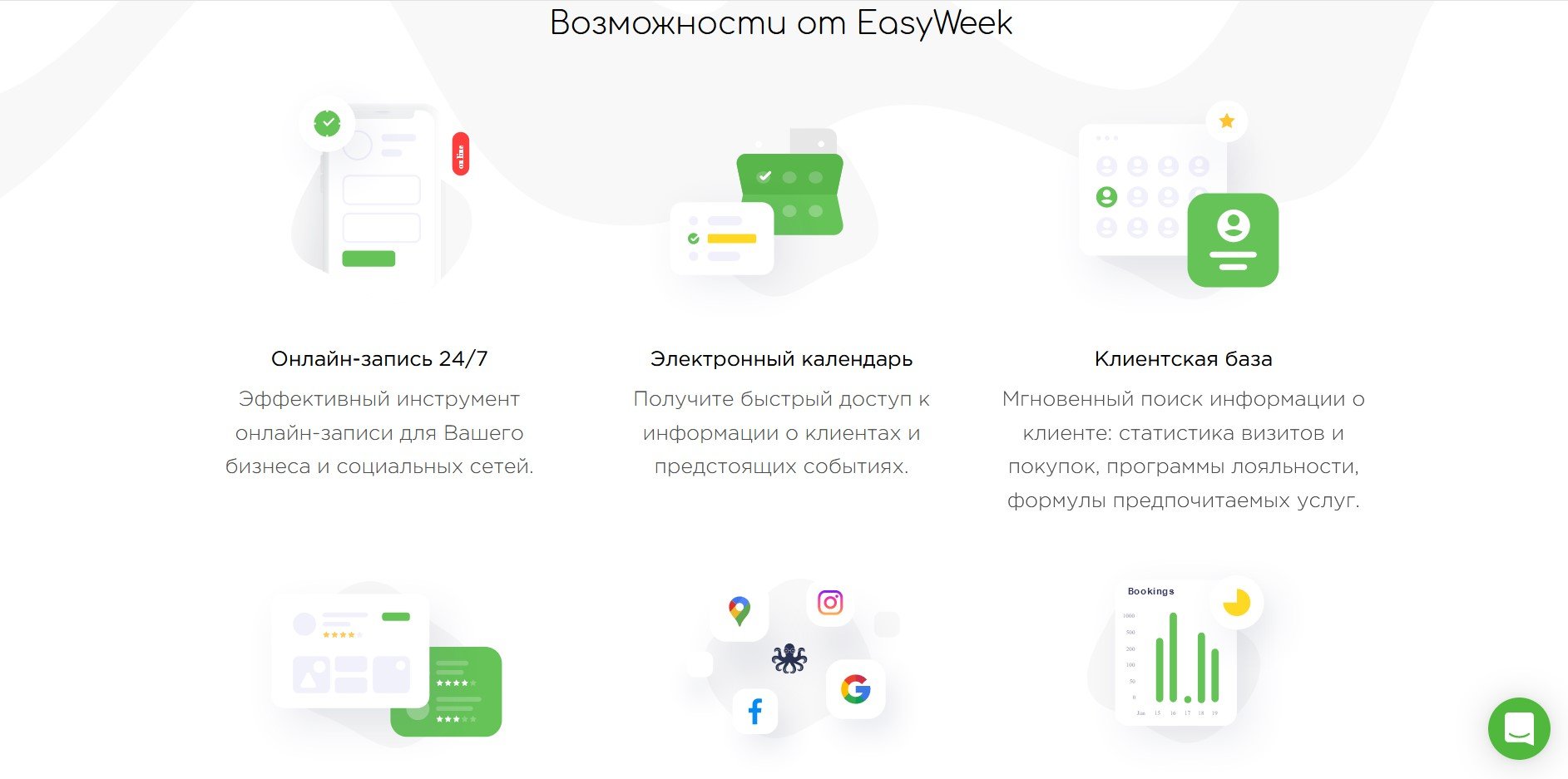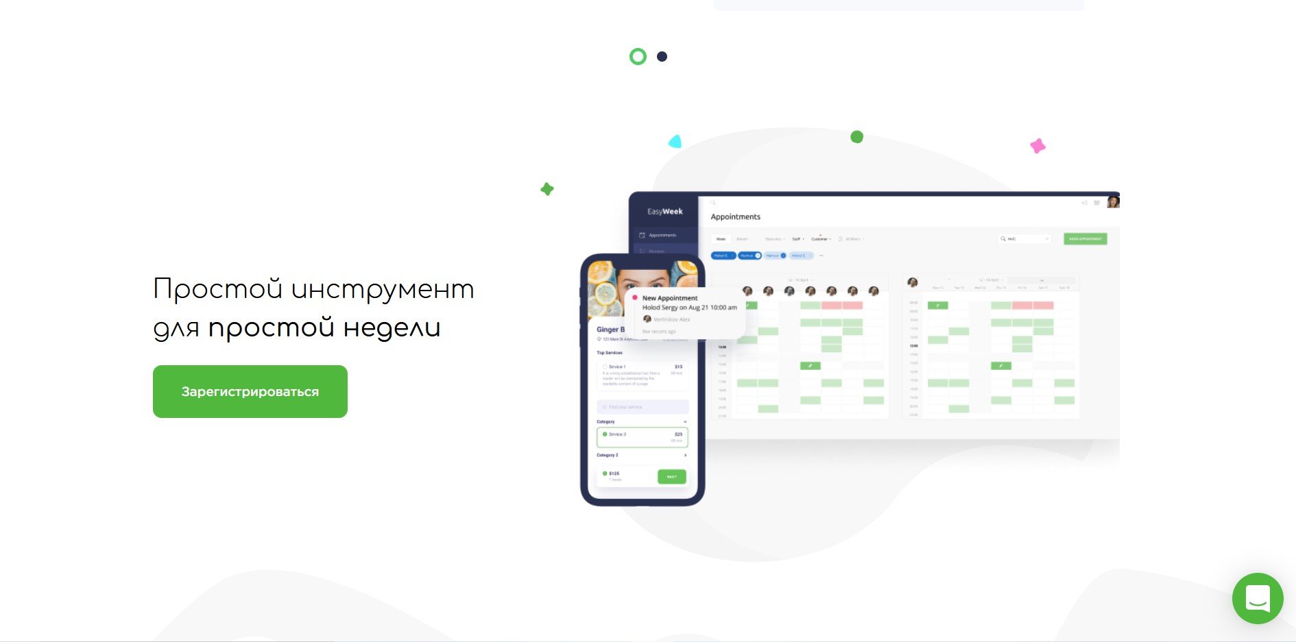 EasyWeek – сервис автоматизации онлайн записи клиентов для салонов красоты и медицинских центров. Цель работы сервиса – повысить продуктивность бизнеса за счет оцифровки бизнес-процессов. EasyWeek работает на рынке систем онлайн-записи с 2018 года. В сервис входит простая система управления бизнесом, виджет онлайн-бронирования и страница онлайн-каталога для самостоятельного бронирования клиентов 24/7.