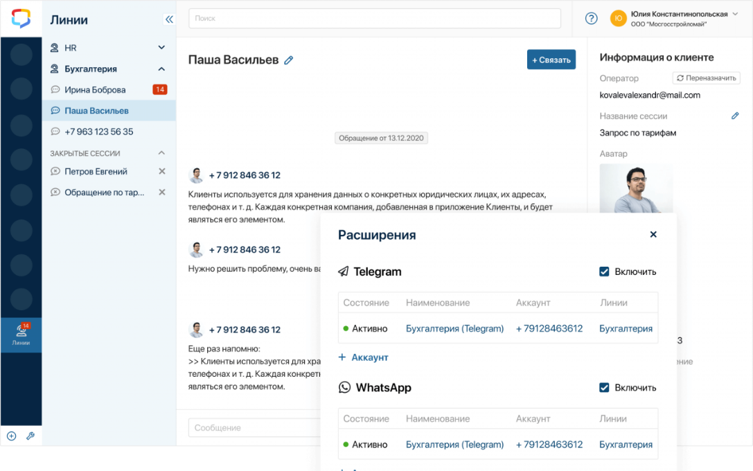 Омниканальная Low-code платформа связывает различные каналы коммуникаций в едином информационном окне, и тем самым позволяет оператору централизованно обрабатывать обращения, сохраняя высокий уровень эффективности и скорость реакции. В системе можно объединить следующие линии связи: