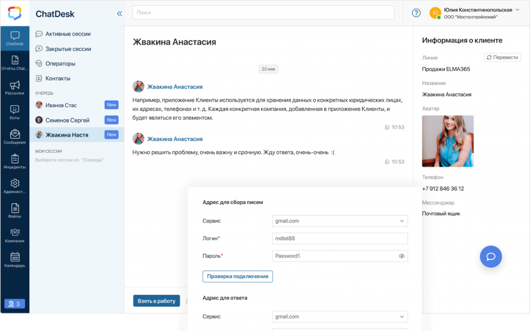 Решение Клиентский сервис позволяет работать с обращениями клиентов в b2b и b2c сегментах. Бизнес-решение собрано для закрытия задач контакт-центров и служб поддержки клиентов, и содержит в себе преднастроенные процессы для эффективного сопровождения клиентов в различных каналах связи: мессенджерах, почте и по телефону.
