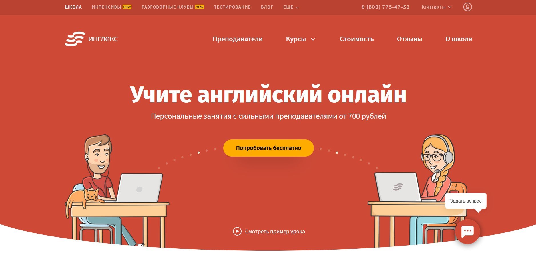 Онлайн-школа обучения английскому «Инглекс» открылась в 2011 году. Выпущено 19 тыс. студентов, постоянно обучается 4,3 тыс. человек. Английский преподается по скайпу или на интерактивной платформе Онлайн-класс. Перед выбором курса можно пройти бесплатный тест и записаться на пробный урок.