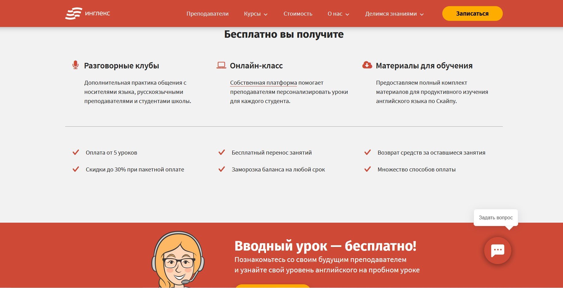 - Бесплатный разговорный клуб.