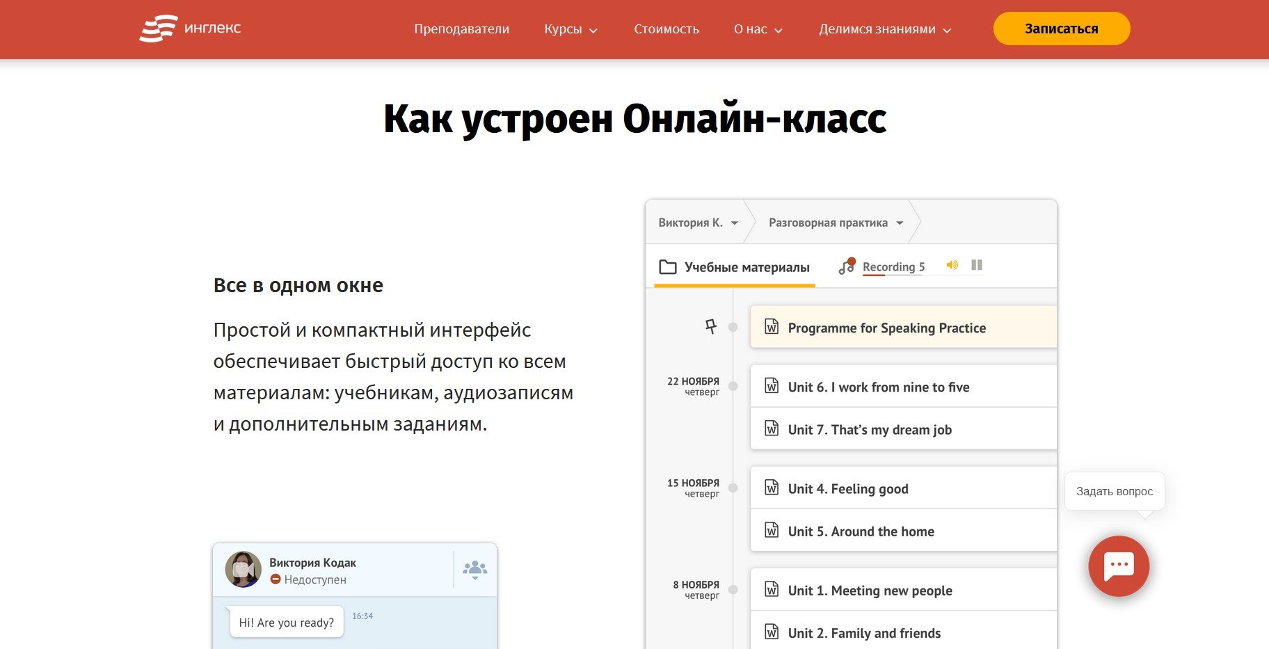 - Удобная платформа Онлайн-класс с видео, встроенным чатом, заданиями и проверкой.