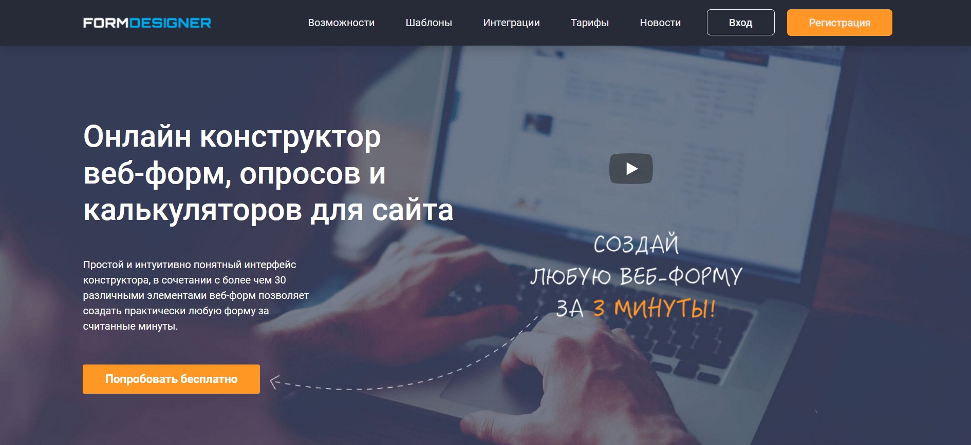 FormDesigner – конструктор веб-форм, опросов и калькуляторов для размещения на сайте. Простой и интуитивно понятный интерфейс дизайнера в сочетании с более чем 30 различными элементами веб-форм позволяет создать практически любую форму за считанные минуты.