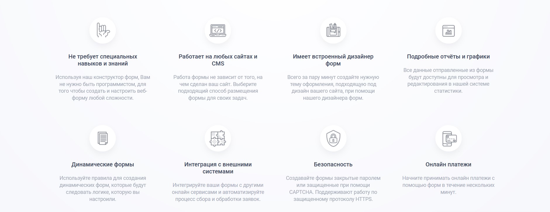 - Функционал дизайнера позволяет создавать веб-формы любой сложности: от стандартной подписки и рассылок по электронной почте до полноценных многостраничных анкет.