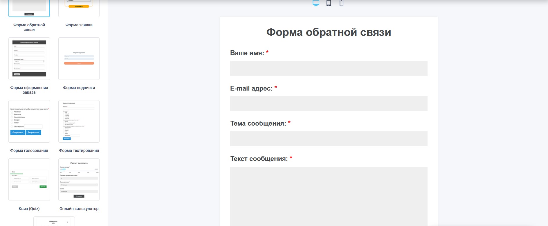 - Конструктор форм позволяет проработать каждый блок и индивидуально настроить дизайн основных групп элементов.