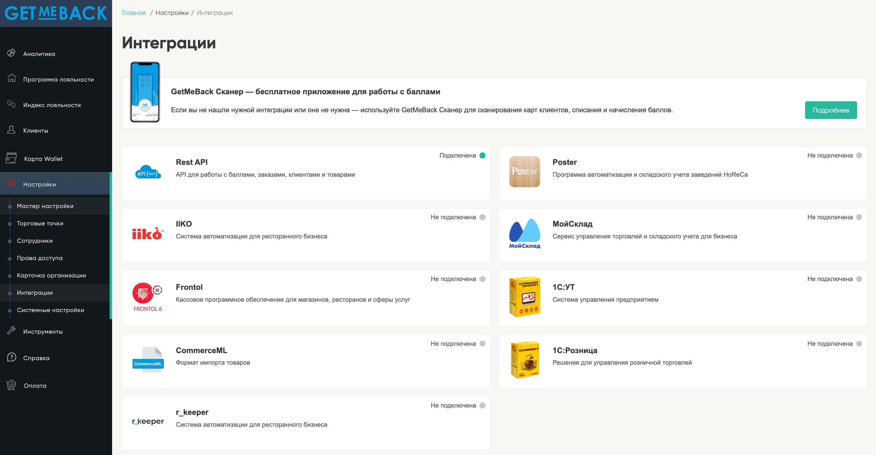 - Готовые интеграции с POS- и платежными системами. Возможно