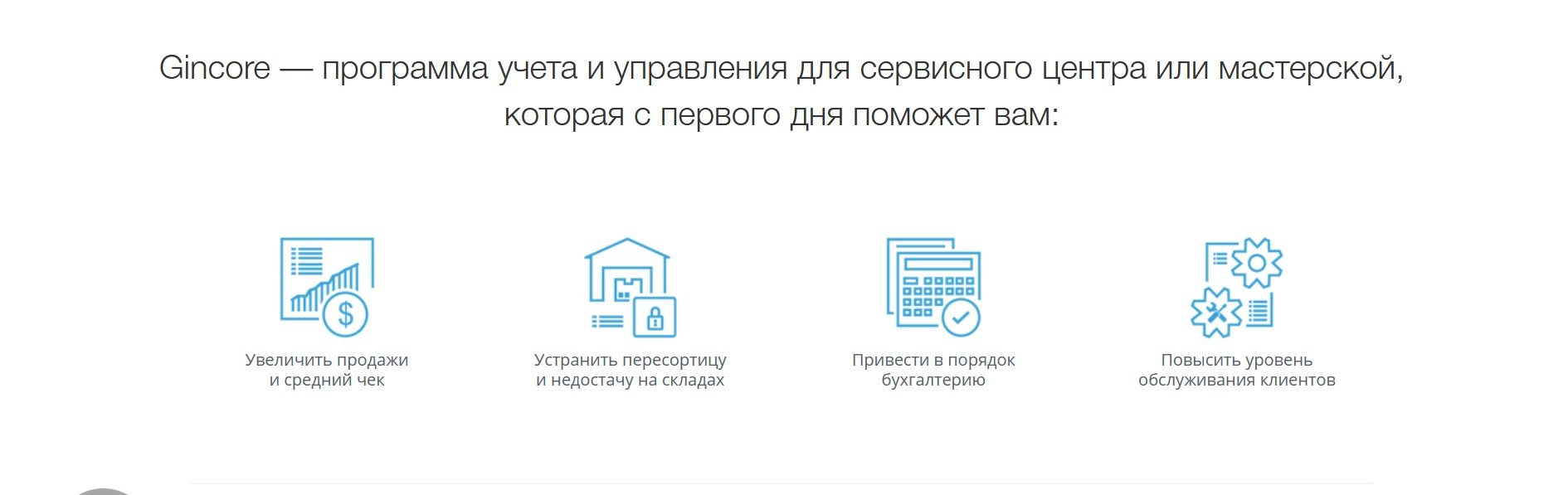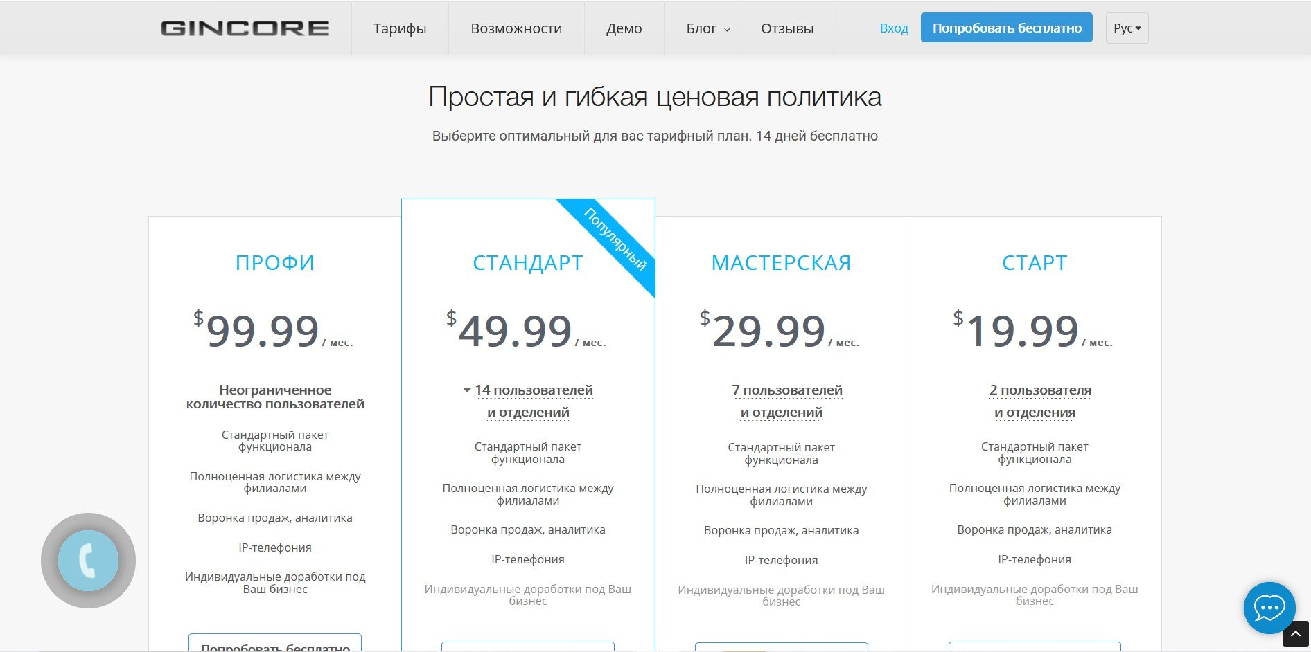 Gincore – комплексная CRM, которая помогает вести бизнес процессы и взаимодействовать с клиентами. Простая настройка и наглядность упростит понимание ситуации в компании. Система работает онлайн, интегрируется с другими программами, формирует подробную отчетность на основе целевых показателей. Две недели сервис можно использовать бесплатно.