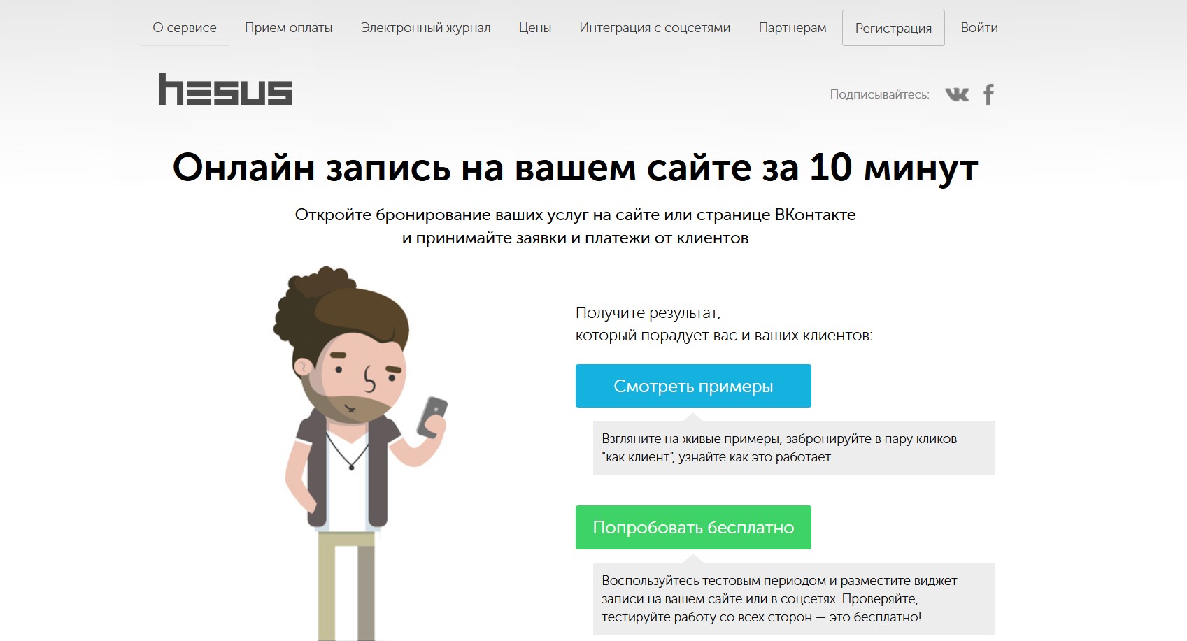 HESUS – сервис онлайн записи клиентов, для бронирования в салон красоты, фитнес, ресторан или билетов на мероприятия. Простой интерфейс с многовариантным наполнением. Только самые нужные функции.