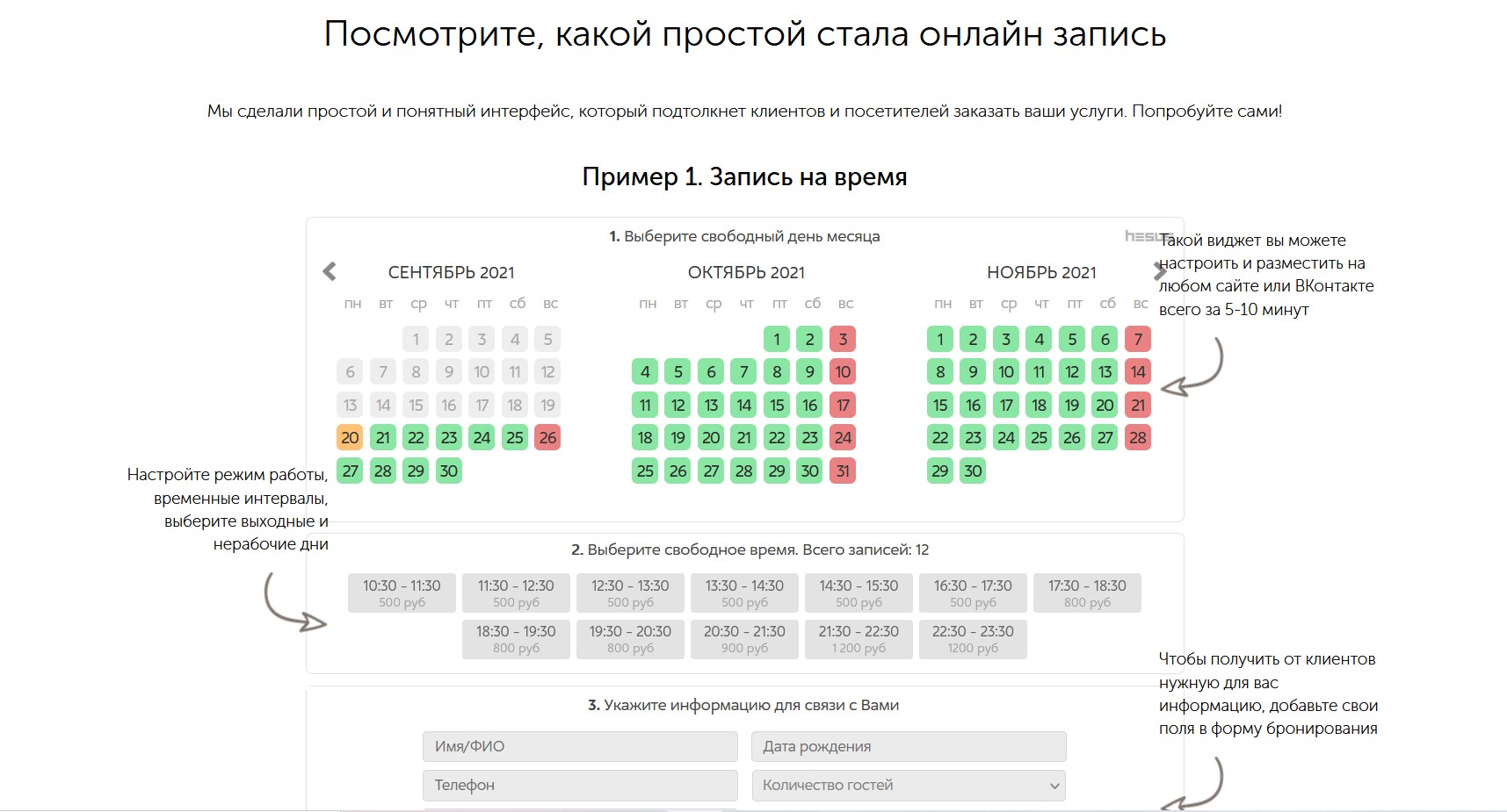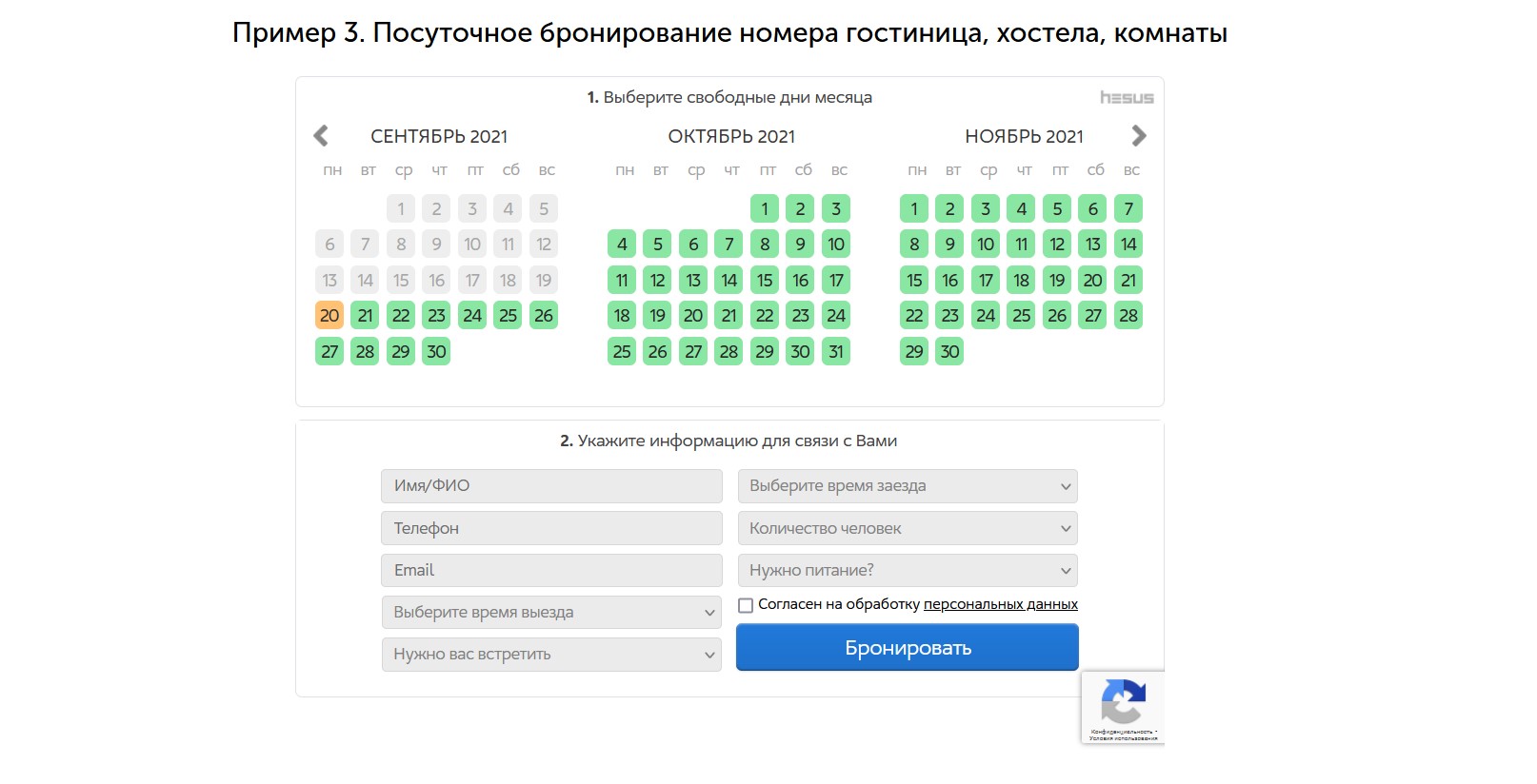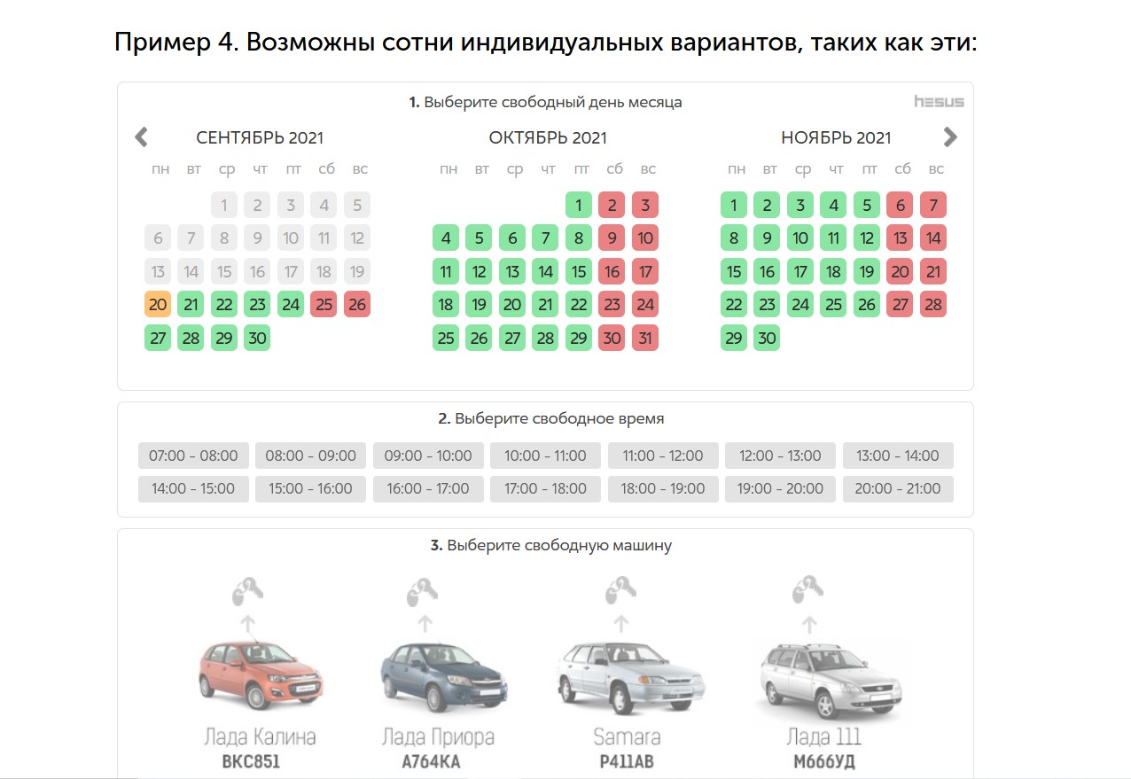 HESUS поможет сделать виджет для бронирования для любого сайта или группы в ВК. Настройка расписания, вида модуля и уведомления для клиентов позволят не потерять их при заказе и сделать процесс удобным.