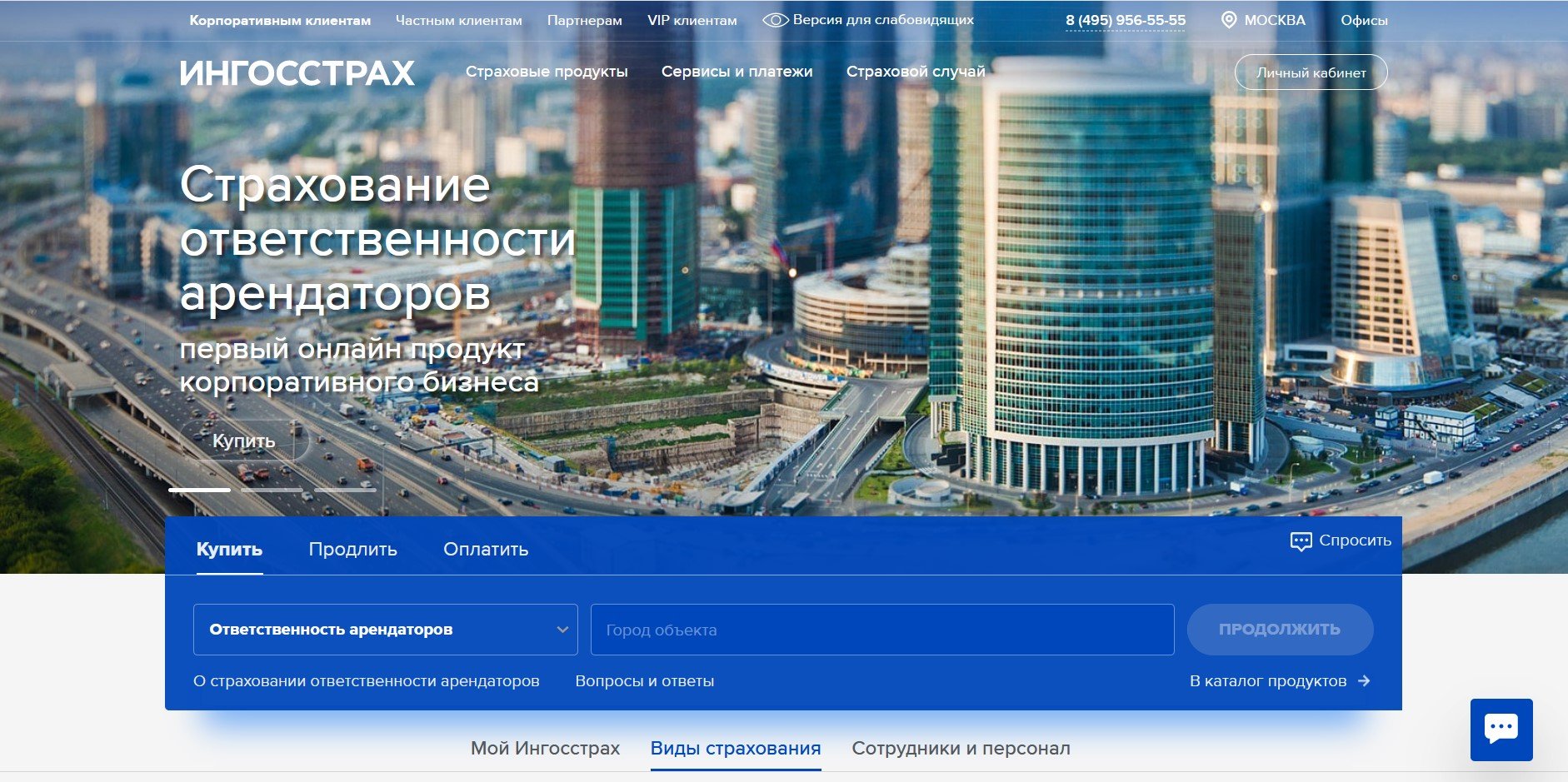 Ингосстрах предлагает широкий спектр страховых услуг для обычных потребителей и компаний. В онлайн режиме можно получить расчет, консультацию, купить большинство страховых продуктов.