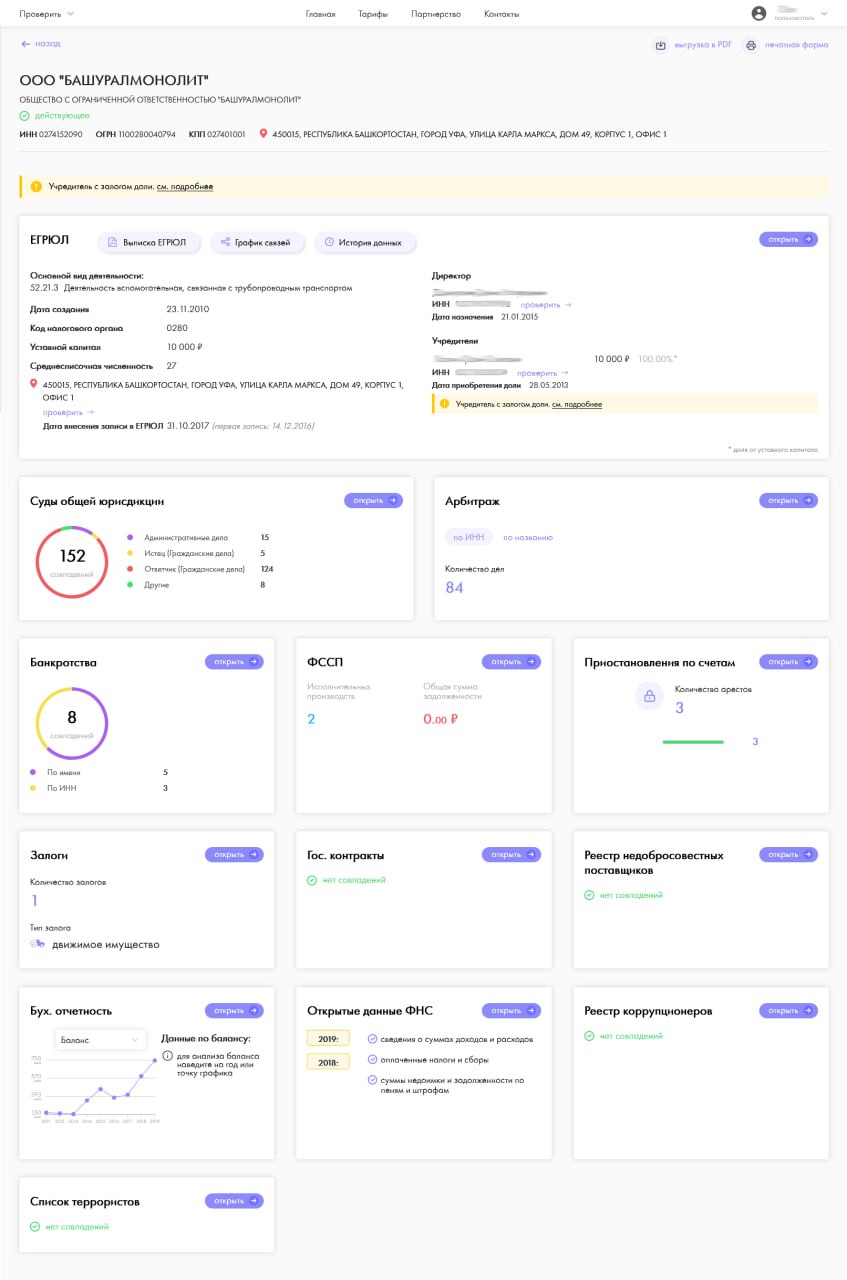 Сервис дает возможность удостовериться в благонадежности контрагента и увидеть риски сотрудничества с ним на раннем этапе.