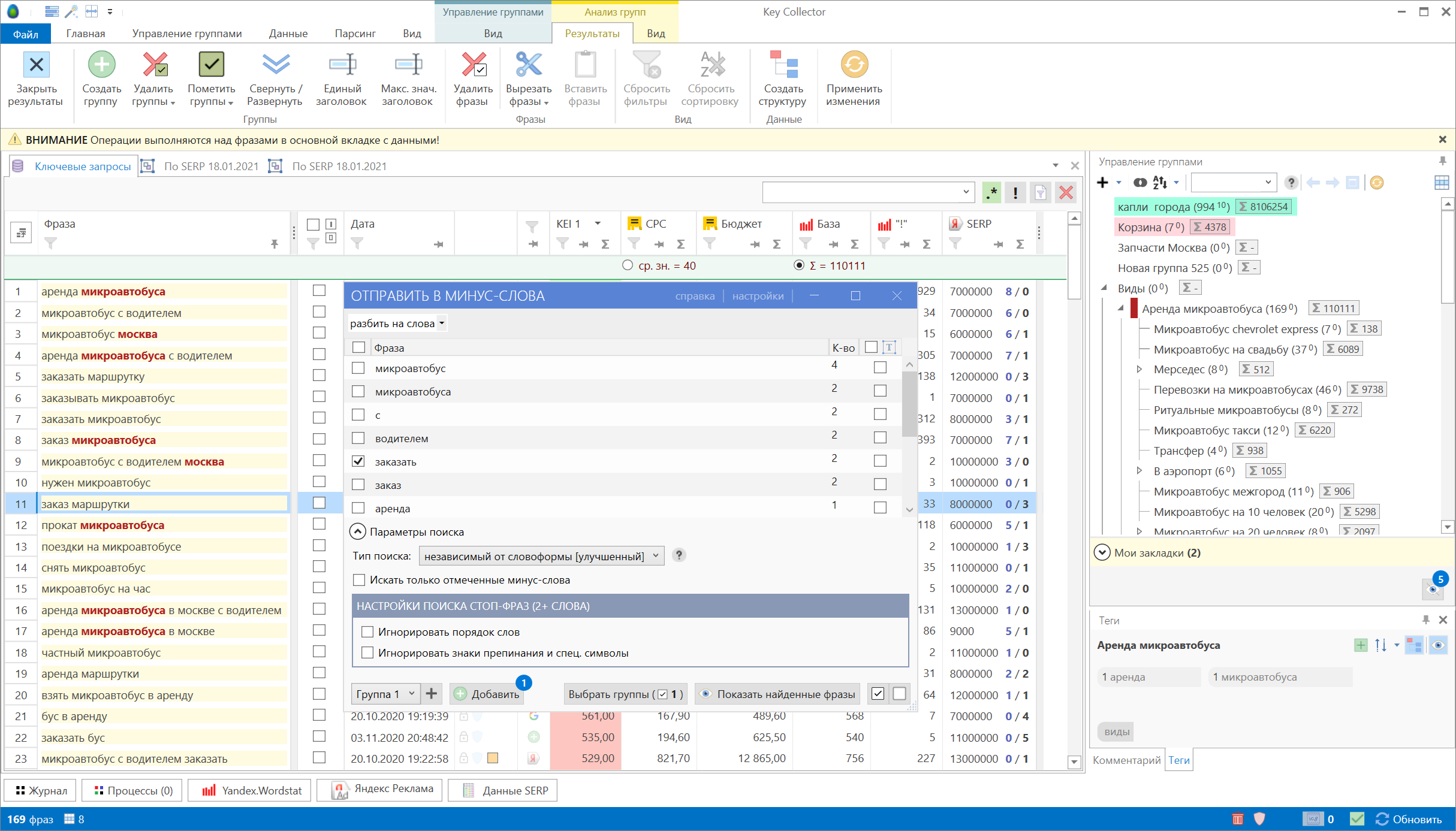 Keycollector – профессиональный инструмент для создания семантического ядра для сайтов, контекстной рекламы, расширенного анализа результатов поиска и сбора ключевых слов.