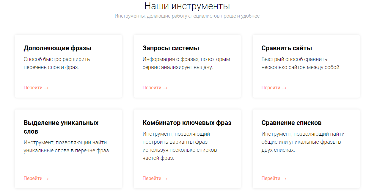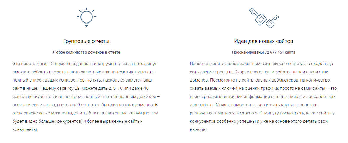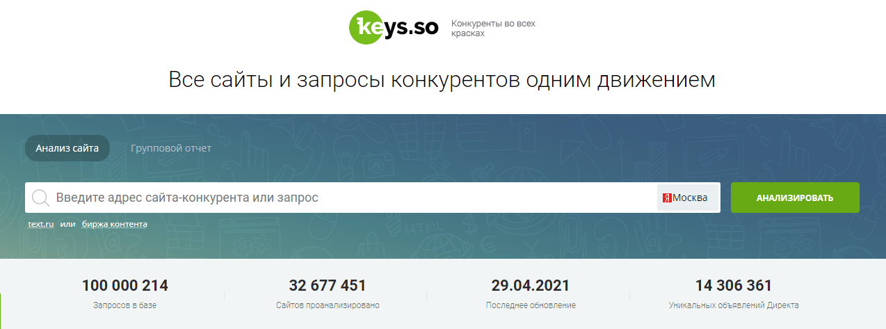 keys.so – сервис анализа ключевых слов и сбора семантического ядра. Помогает быстрее выйти в ТОП и продвинуть новый сайт. Полезен не только профессионалам, но и тем, кто продвигает информационные сайты и блоги.