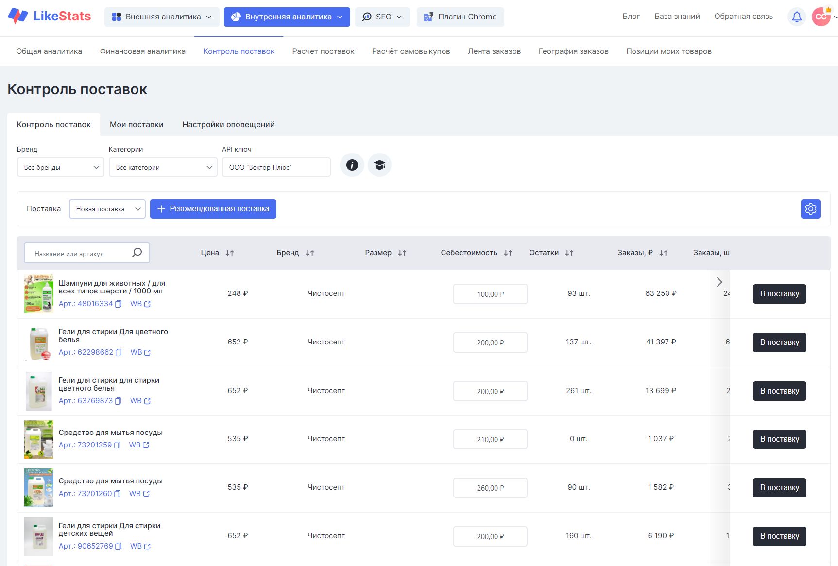 Likestats – это сервис аналитики Wildberries. Предлагает комплексные возможности аналитики продаж и поставок для обеспечения роста бизнеса. Сервис необходим уже торгующим на маркетплейсе и тем, кто собирается это делать – для выбора выгодных позиций и анализа конкурентов.