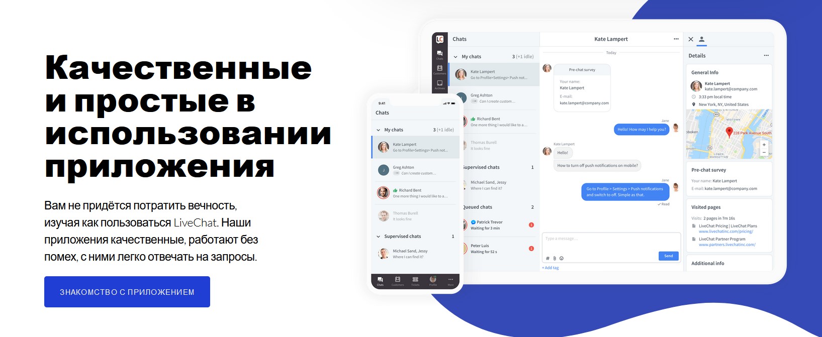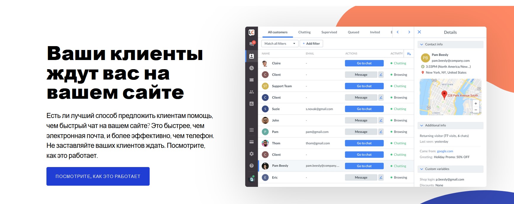 LiveChat – это платформа обслуживания клиентов, которая помогает привлечь больше посетителей, увеличить продажи и повысить удовлетворенность клиентов по нескольким каналам. Принцип работы прост: нужно добавить чат на свой сайт, подождать, пока посетители зададут вопрос, или, в качестве альтернативы, отправить им приглашения в чат. Использование сервиса приводит больше довольных клиентов, больше решенных проблем и больше проданных товаров.