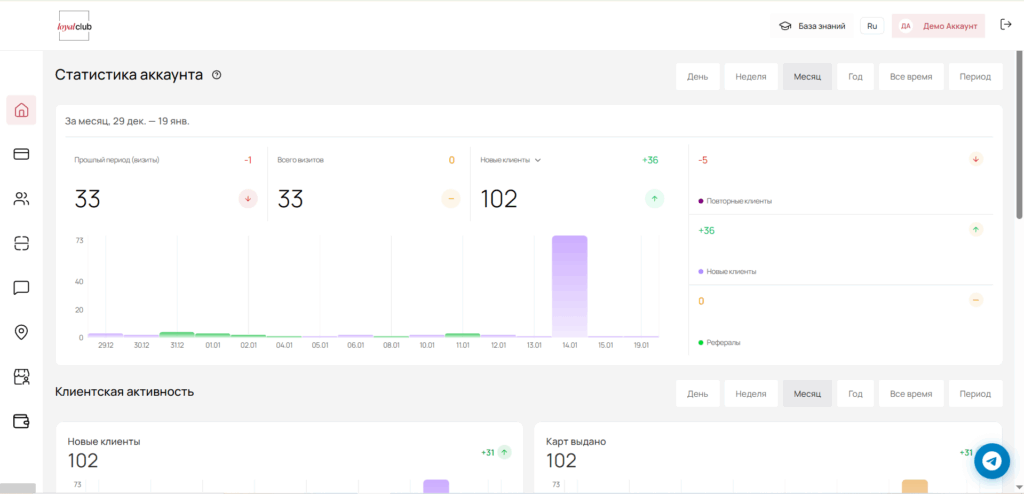 Loyal Club — сервис цифровых программ лояльности в Apple Wallet / Google Wallet для малого и среднего бизнеса. Помогает возвращать клиентов, увеличивать выручку без демпинга, упрощать лояльность, запускать коммуникации, усиливать репутацию и добавлять инструменты продаж. Подходит офлайн-бизнесу, где важны повторные визиты и удержание.
