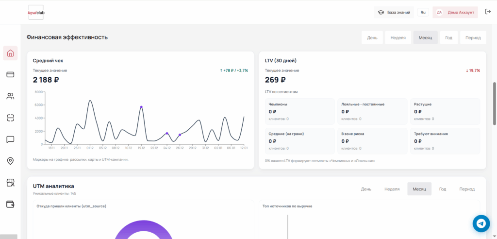 • Дополнительные продажи: даёт инструменты для привлечения новых клиентов и повторных покупок (сертификаты, рефералка)