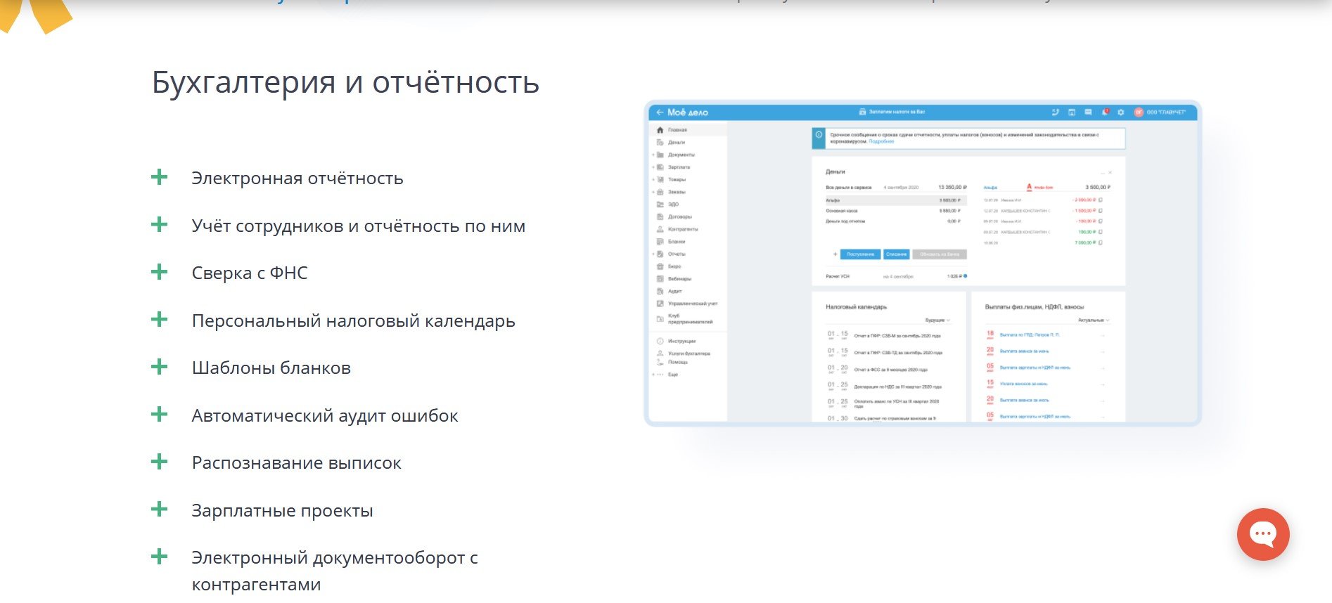«Мое дело» – это сервис ведения бухгалтерского учета. Подойдет бухгалтеру и руководителю компании. Упрощает и удешевляет рутинные процессы. «Коробочная версия» включает товарный учет, бухгалтерию, кадры, налоги и финансы. Можно использовать отдельный модуль товарного учета или управленческого учета. А также весь процесс бухгалтерии можно отдать на аутсорсинг со страхованием рисков.