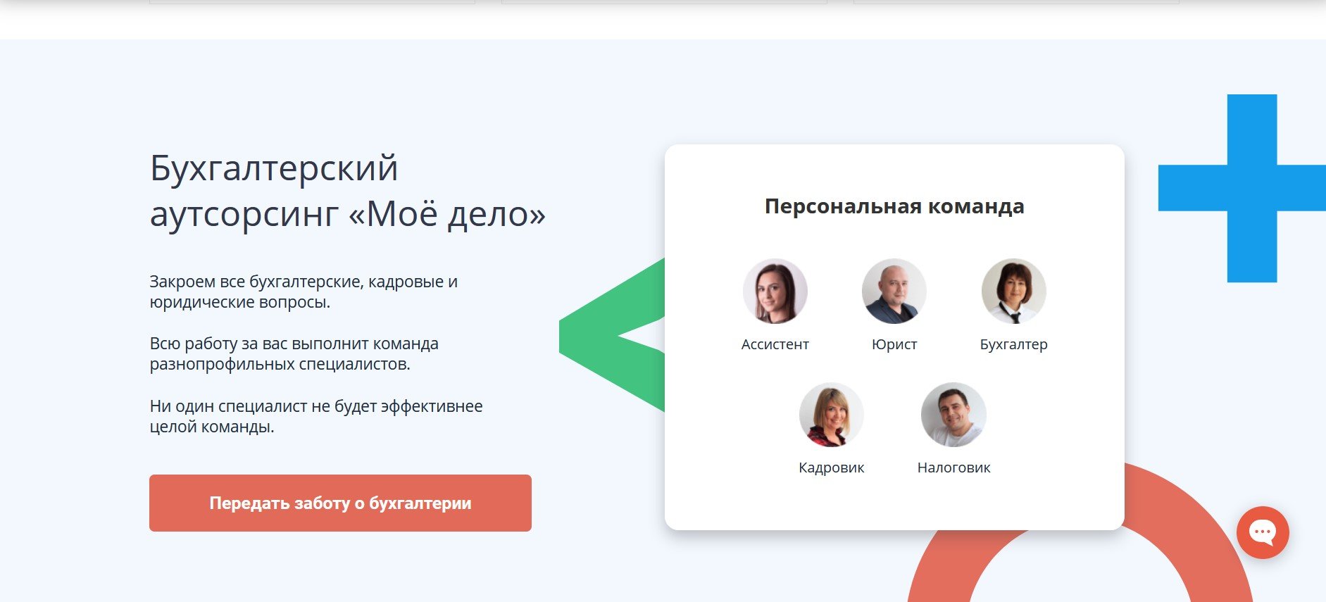 - Полный аутсорсинг бухгалтерии удаленно и с финансовыми гарантиями. Деятельность застрахована на 10 млн. руб. Все прописывается в договоре. Команда сопровождения подбирается по отрасли.