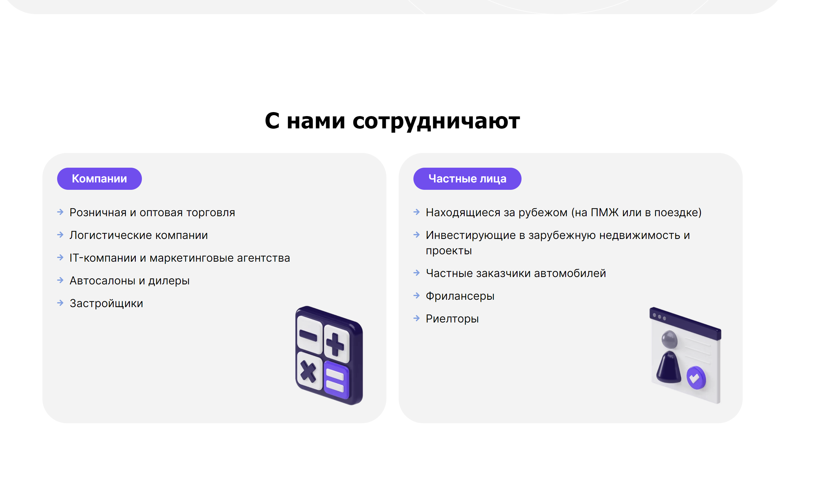 Любому частному клиенту – будь то просто перевод денег, зарплата или покупка недвижимости за границей.