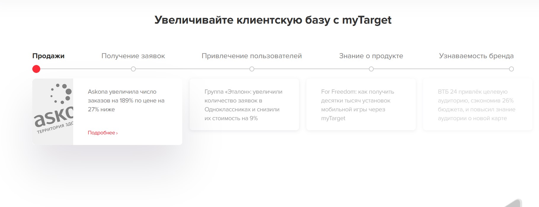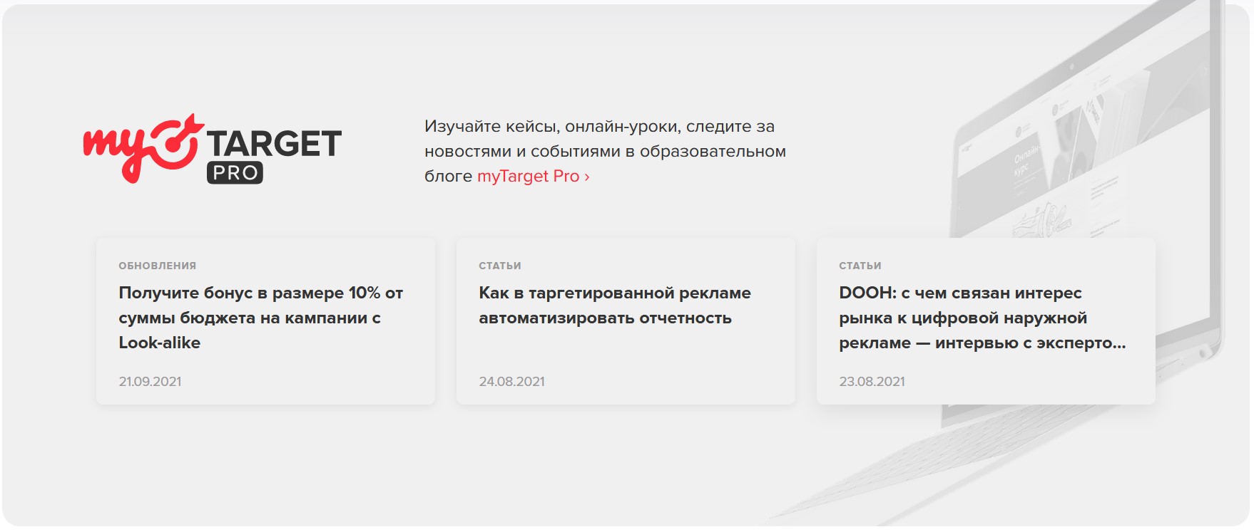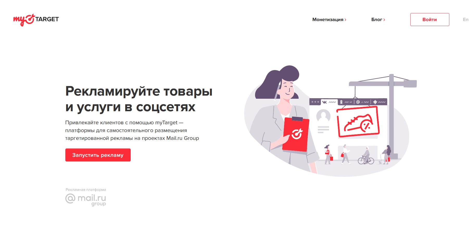 myTarget – сервис размещения таргетированной рекламы на проектах Mail.ru. Сервис охватывает 96% активных пользователей Рунета из проектов «Одноклассники», «ВКонтакте», «Мой мир» и других.