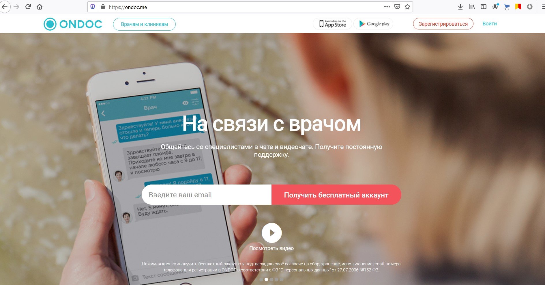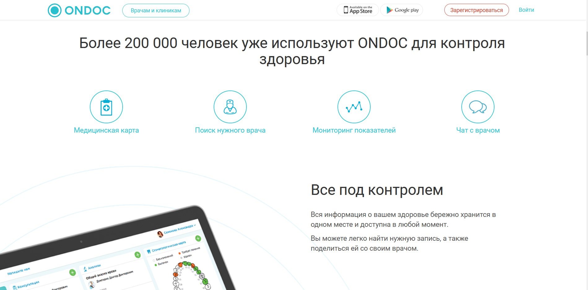 ONDOC– онлайн сервис телемедицинских услуг, объединяющий возможности онлайн и офлайн консультаций. Сервисом уже пользуются 200 тыс. человек. Система хранения данных имеет высокую степень безопасности. Онлайн-сервис предоставляет удобные возможности хранения, мониторинга показателей, записывает к врачу и предоставляет широкий выбор онлайн-консультаций.