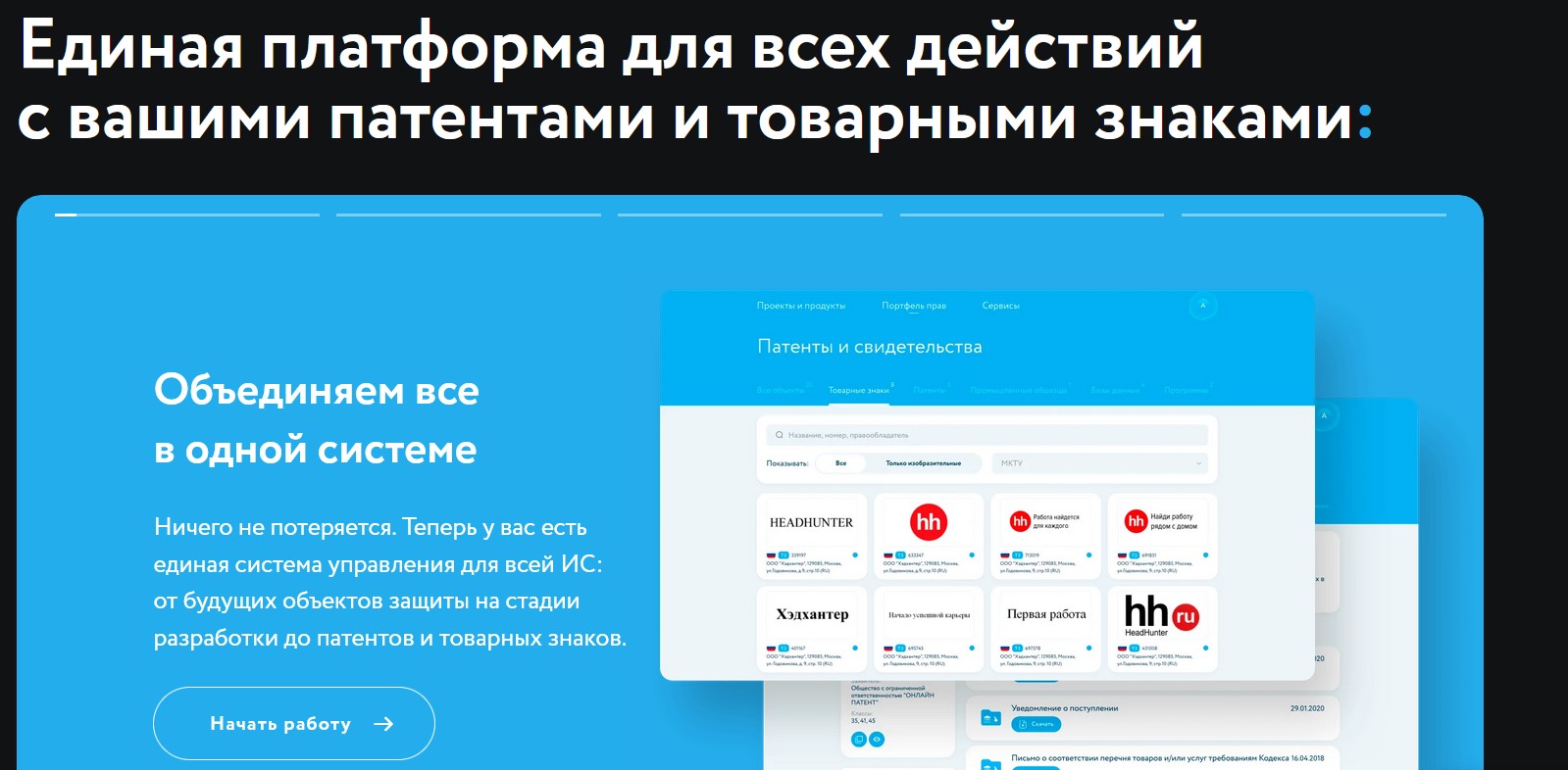 Онлайн Патенту доверяют более 45 тыс. пользователей из разных стран. На сервисе можно не только получить права на товарный знак и другие объекты ИС, но и проверить бренд по базам данных, рассчитать риски для сайта и получить рекомендации для соцсети.