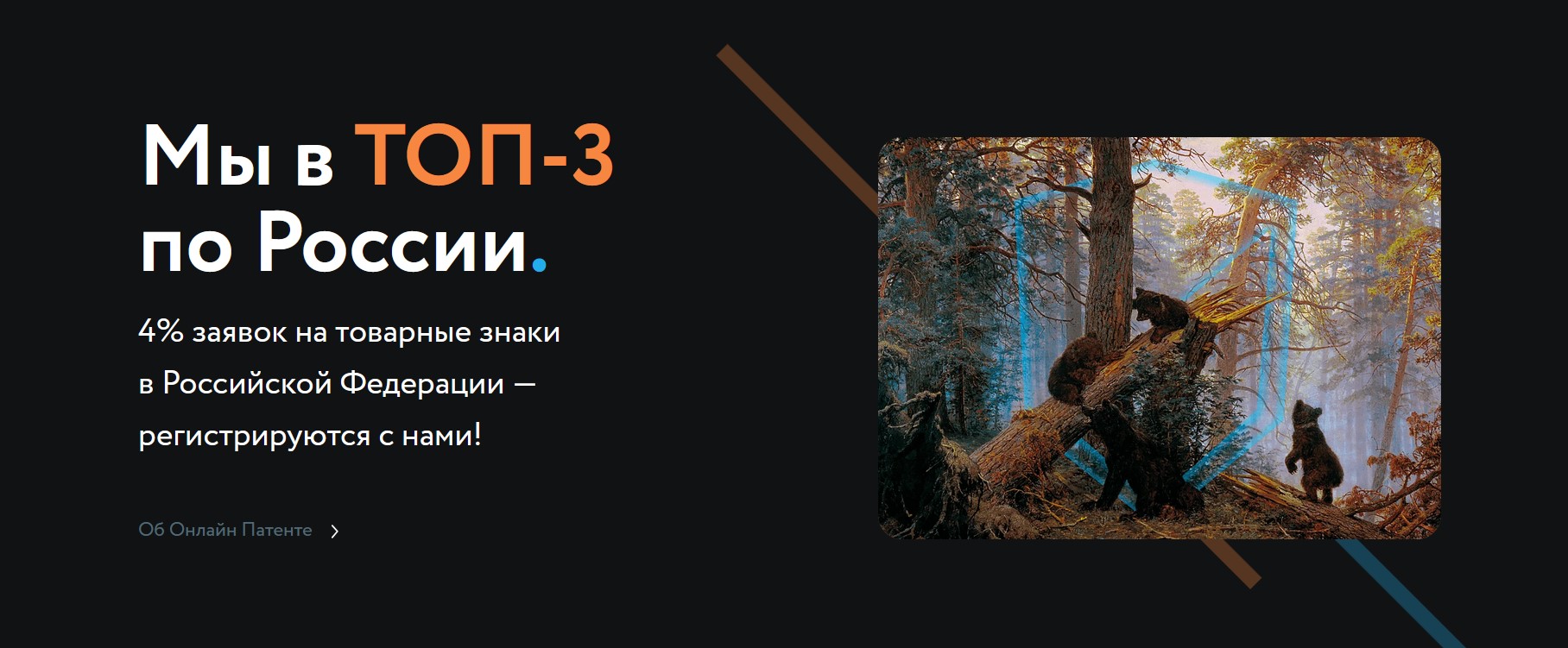Онлайн Патент – онлайн сервис для дистанционной регистрации товарных знаков, софта, полезных моделей и прав на сайты. Все процедуры официальные. Сервис входит в ТОП-3 компаний, которые ежегодно подают заявки Роспатенту. Сервисом пользуются клиенты не только из России, но и многих других стран.