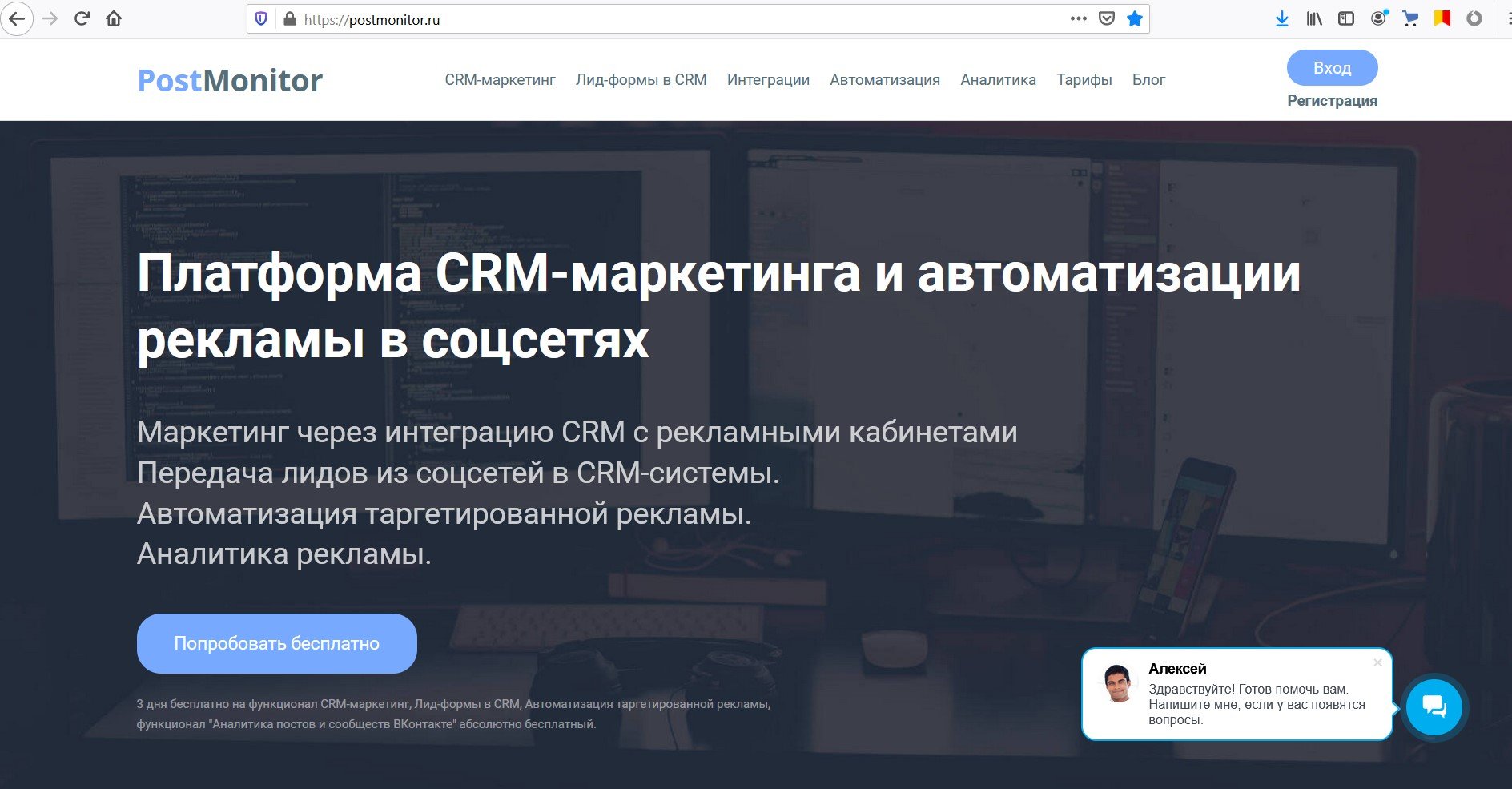 - Бесплатный тестовый период 3 дня на услуги CRM-маркетинга, передачу лидов, интеграцию с сервисами, автоматизацию таргетированной рекламы.