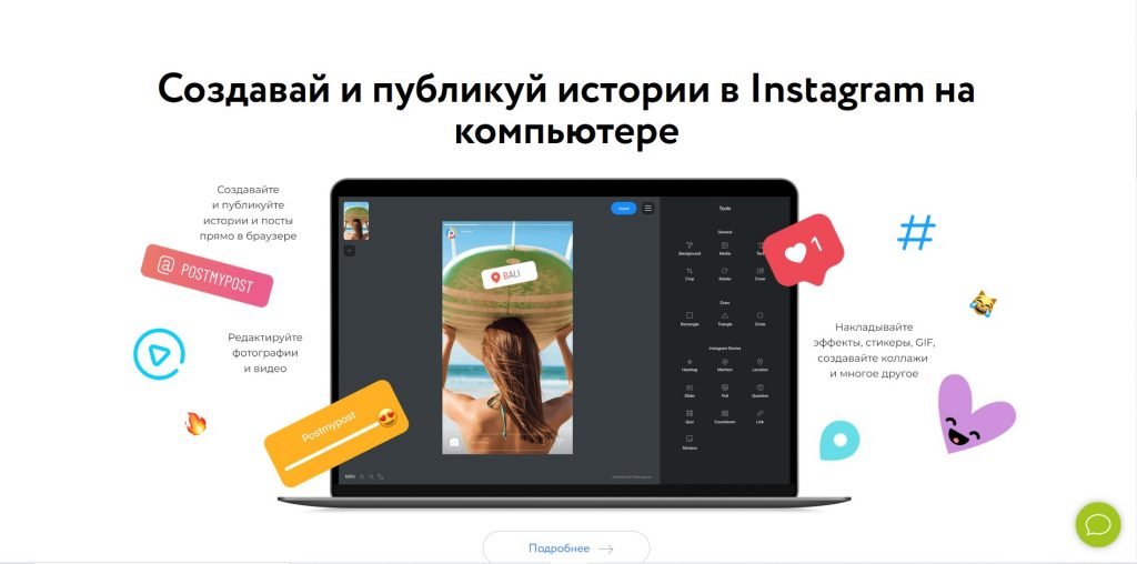 - Создание постов для Инстаграм и публикация с компьютера.